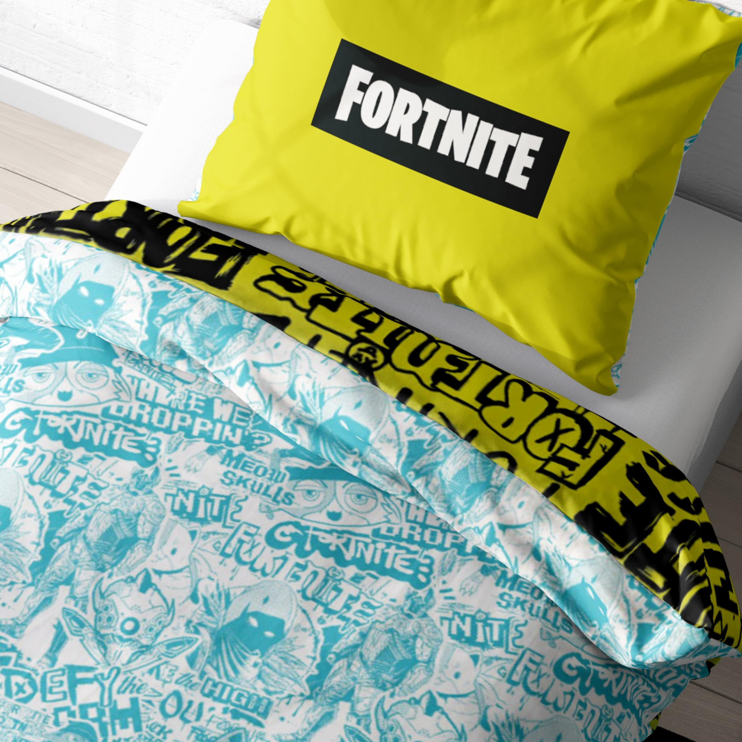 Schlafe wie ein echter Fortnite-Profi! Dieses coole Bettwäsche-Set bringt den Gaming-Spaß direkt ins Kinderzimmer. Mit lebendigen Fortnite-Motiven wird jedes Schlafzimmer zum echten Gamer-Paradies. Das Set includes Bettbezug 135x200cm und Kissenbezug 80x80cm - perfekt für Einzelbetten. Aus hochwertiger Microfaser (100% Polyester) mit 200 TC Fadendichte, super weich und angenehm auf der Haut. Der versteckte Reißverschluss sieht gut aus und ist praktisch, die 4 Eckbänder halten die Decke sicher an Ort und Stelle. OEKO-TEX zertifiziert - absolut schadstofffrei und auch für Allergiker geeignet. Einfach bei 30°C in der Maschine waschen, trocknergeeignet und bügelfrei. Perfektes Geschenk für Fortnite-Fans - ob Junge oder Mädchen, hier ist die Begeisterung garantiert!