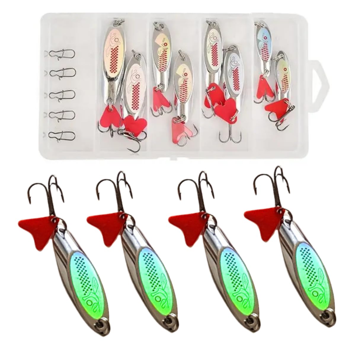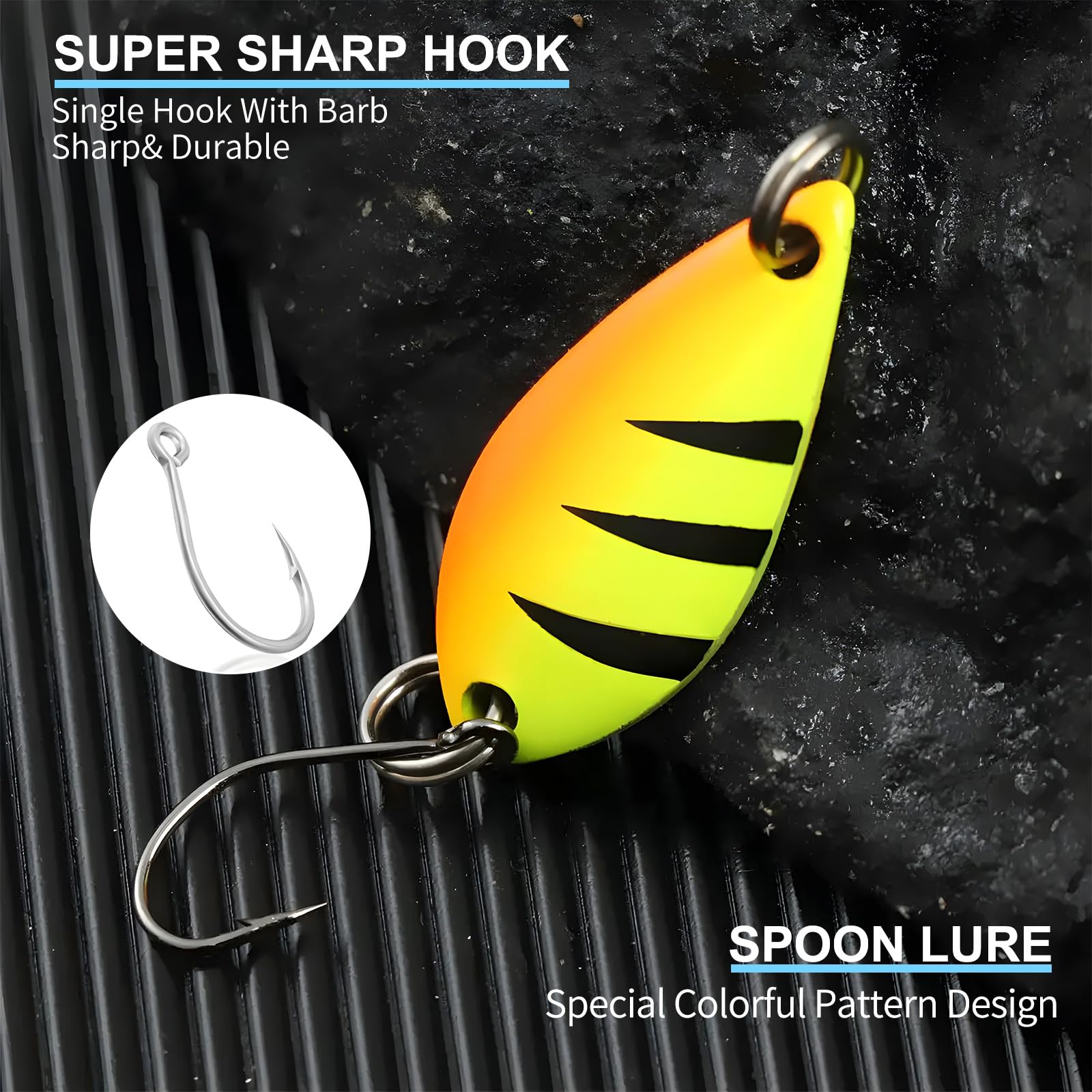 Perfekt für deinen nächsten Angelausflug! Dieses Set mit 16 bunten Forellen-Blinkern bringt richtig Action an die Rute. Aus robustem Metall gefertigt, die halten was aus - kein Verformen, kein Rosten! Die 3D-Augen und reflektierenden Farben locken Forellen, Barsche und Zander magisch an. Egal ob Süß- oder Salzwasser, bei jedem Wetter ein Volltreffer! Im Set dabei: 16 Köder in verschiedenen Farben plus praktischer Hakenschärfer. Alles sicher verstaut in der Aufbewahrungsbox. Die Metallblinker glitzern super im Wasser und erhöhen deine Fangchancen richtig. Einfach ausprobieren und sich über volle Kescher freuen! Für Anfänger und Profis gleichermaßen geeignet. Mach dein nächstes Angelerlebnis unvergesslich!