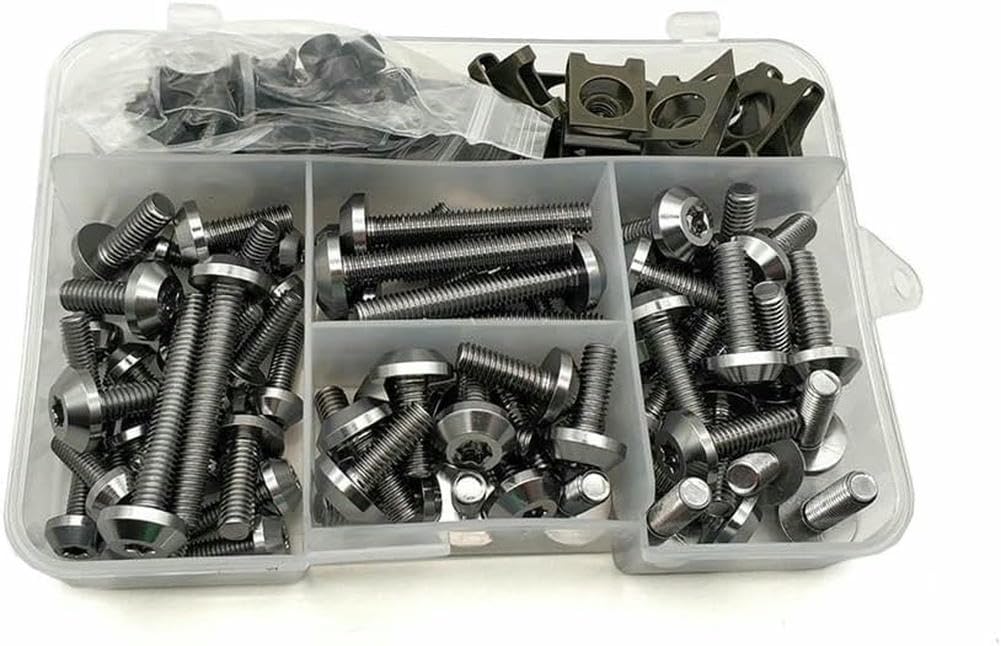 Motorrad-Fans, dieses 175-teilige Schrauben-Set gibt eurer Suzuki TL1000S einen frischen Look! Von 1997-2001 - passt perfekt. Aus hochwertigem CNC-Aluminium in verschiedenen Farben erhältlich. Enthält alles was ihr braucht: M6 und M5 Schrauben in verschiedenen Längen, Speed Clips, Unterlegscheiben und sogar Schraubenschlüssel. Einfach die alten, rostigen Schrauben austauschen und schon sieht eure Maschine aus wie neu. Ob für Verkleidung, Windschutzscheibe oder Tankdeckel - hier ist für jede Position die passende Schraube dabei. Macht euer Bike individueller und schützt vor Rost. Einfach montieren und sich über den neuen Look freuen!