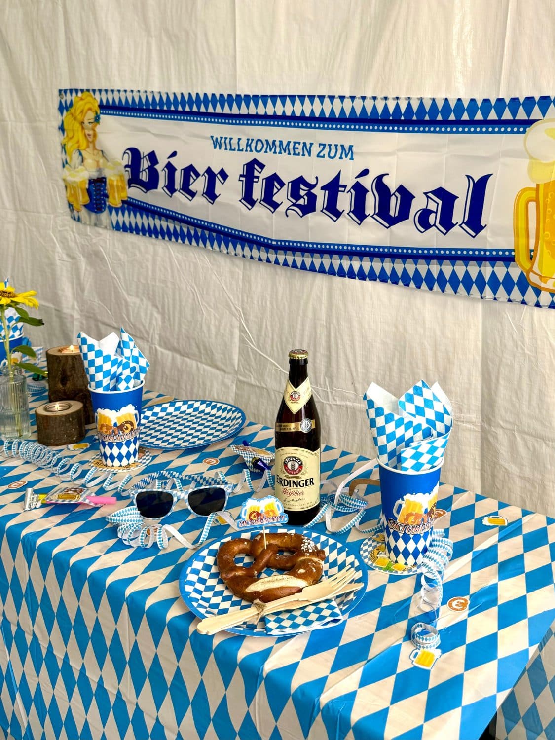 Aus robustem Polyester, waschbar und langlebig. Die Farben Blau und Weiß sind klassisch bayerisch und verblassen nicht. Perfekt für Bierzelte, Gartenpartys oder dein Wohnzimmer.