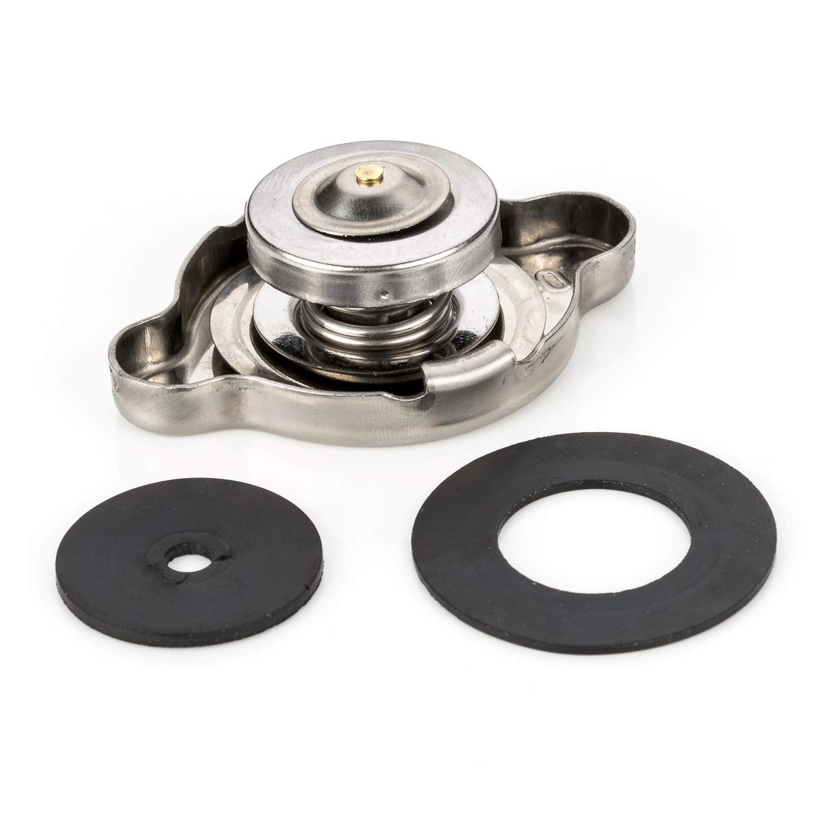 Perfekter Ersatz für deine Kühlerabdeckung! Dieses 2er-Set aus robustem Eisen hält dein Kühlsystem dicht und schützt vor lästigen Kühlmittellecks. Die silbernen Deckel sind korrosionsbeständig und halten auch bei extremen Temperaturen stand. Mit den Maßen 6,4x4,5x2,3 cm passen sie für viele Fahrzeugmodelle - ob Auto, LKW oder andere Fahrzeuge. Einfach auszutauschen und sofort einsatzbereit. Die dichte Abdichtung sorgt dafür, dass der richtige Druck im Kühler erhalten bleibt und dein Motor nicht überhitzt. Super praktisch, um Verschleißprobleme zu beheben und die Lebensdauer deines Kühlsystems zu verlängern. Ein Must-Have für jede Werkstatt oder Heimwerker-Garage! Immer gut, Ersatzteile parat zu haben - damit du nicht plötzlich mit einem überhitzten Motor dastehst.