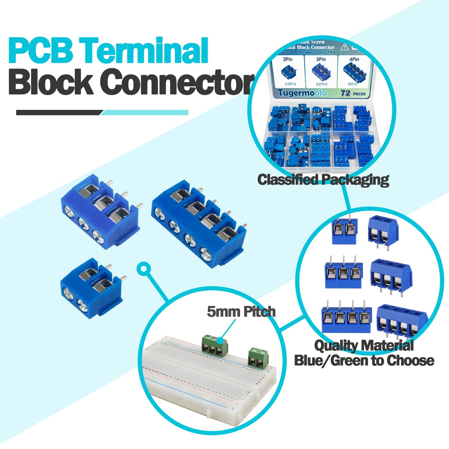 Für alle Elektronik-Freaks: Dieses Set hat einfach ALLES, was du für deine Projekte brauchst! 40 Schraubklemmen in 8 verschiedenen Ausführungen - sowohl 2-polig als auch 3-polig mit Abständen von 2,54mm, 3,81mm, 5mm und 7,5mm. Jede Variante ist 5x vorhanden. Super einfach zu verlöten und total stabil. Die feuerhemmende Ausführung sorgt für Sicherheit bei deinen Projekten. Perfekt für Arduino-Boards, DIY-Platinen, Oszillatoren oder was du sonst so bastelst. Einfach unverzichtbar in jeder Werkstatt - damit bist du für jedes Projekt gewappnet!