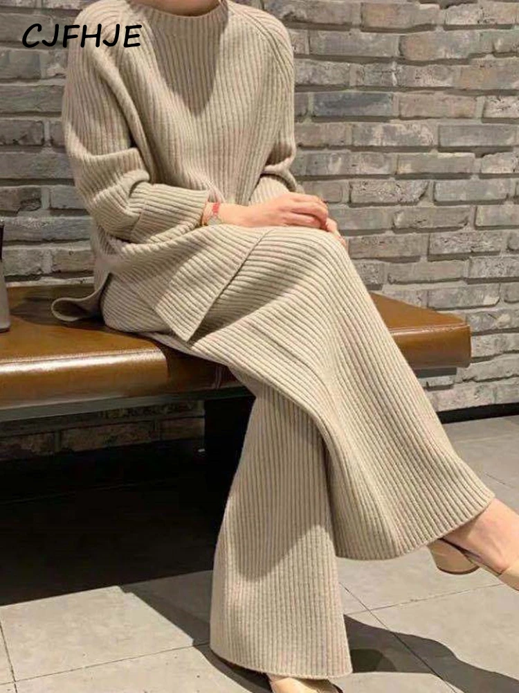 • Damen Strick Set 2-teilig - Pullover & Weite Hose Für Winter Lounge Wear