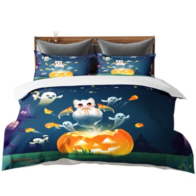 Halloween Bettwäsche Set 2-tlg - Kürbis & Geist Design Mit Microfaser