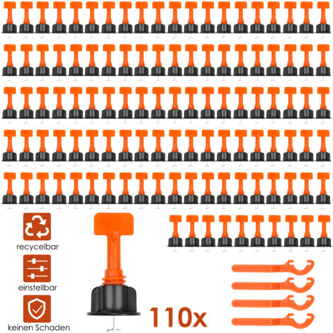 Fliesen verlegen wie ein Profi - ganz einfach! Mit diesem Nivelliersystem kriegst du perfekt ebene Fliesen ohne Kanten. Einfach Gewindelaschen in die Fugen stecken, Zughaube draufdrehen bis alles auf einer Höhe ist. Nach dem Aushärten einfach abbrechen - fertig! Für Fliesen von 6-16 mm Stärke und 1 mm Fugenbreite. Funktioniert an Wänden und Böden. Mit den wiederverwendbaren Zughauben und Schutz-Pads sparst du dir viel Ärger. Endlich makellose Ergebnisse auch als Heimwerker! Das Set mit 200 Teilen reicht für große Flächen.
