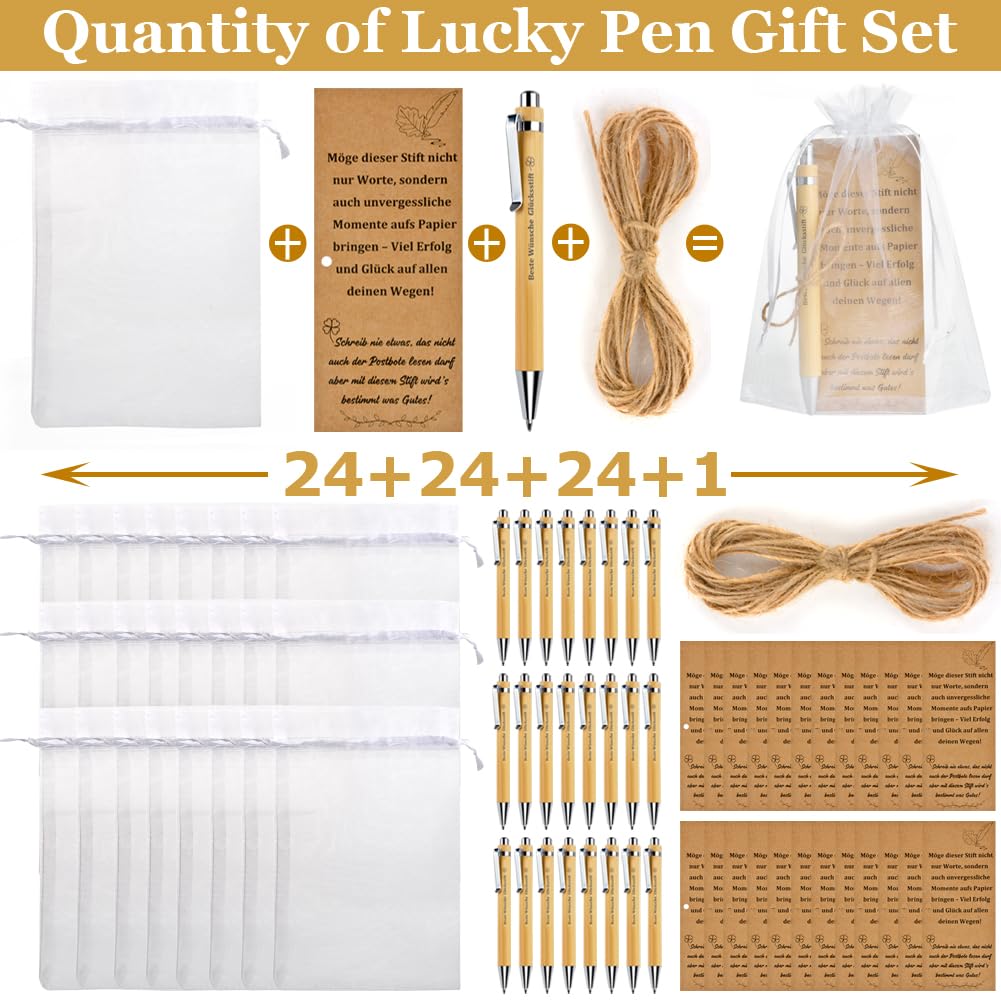 Dieses Glücksstift-Set ist das perfekte Geschenk für Kollegen, Lehrer oder Freunde! Enthält 26 Holz-Kugelschreiber mit der Gravur 'Glücksstift', dazu Karten, Organzabeutel und Holz-Anhänger. Jeder Stift schreibt flüssig und liegt angenehm in der Hand. Die Karten haben eine herzliche Botschaft: 'Möge dieser Glücksstift dir stets Glück und Freude schenken'. Einfach zusammenzubauen und in den weißen Beuteln verpackt - sofort verschenkfertig! Ideal für Abschiede, Ruhestand, Geburtstage oder einfach als Dankeschön. Umweltfreundlich und wiederverwendbar. Mach deinen Lieben eine Freude mit diesem persönlichen Geschenk!