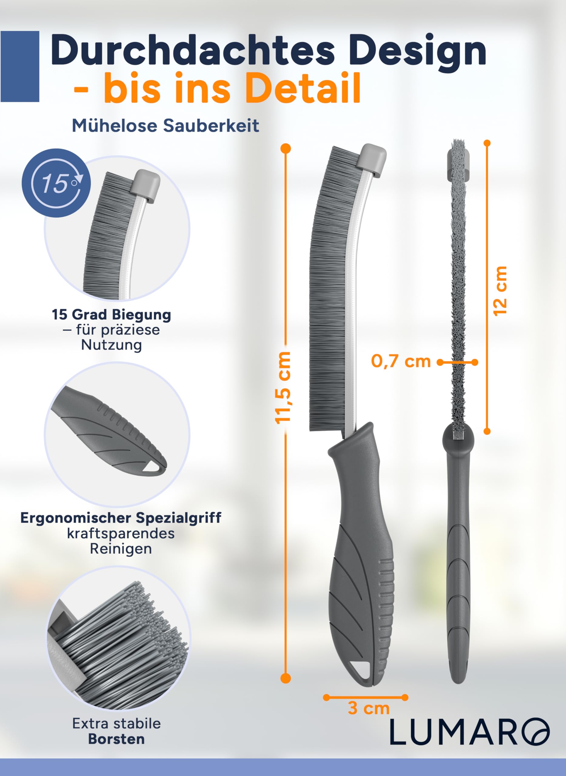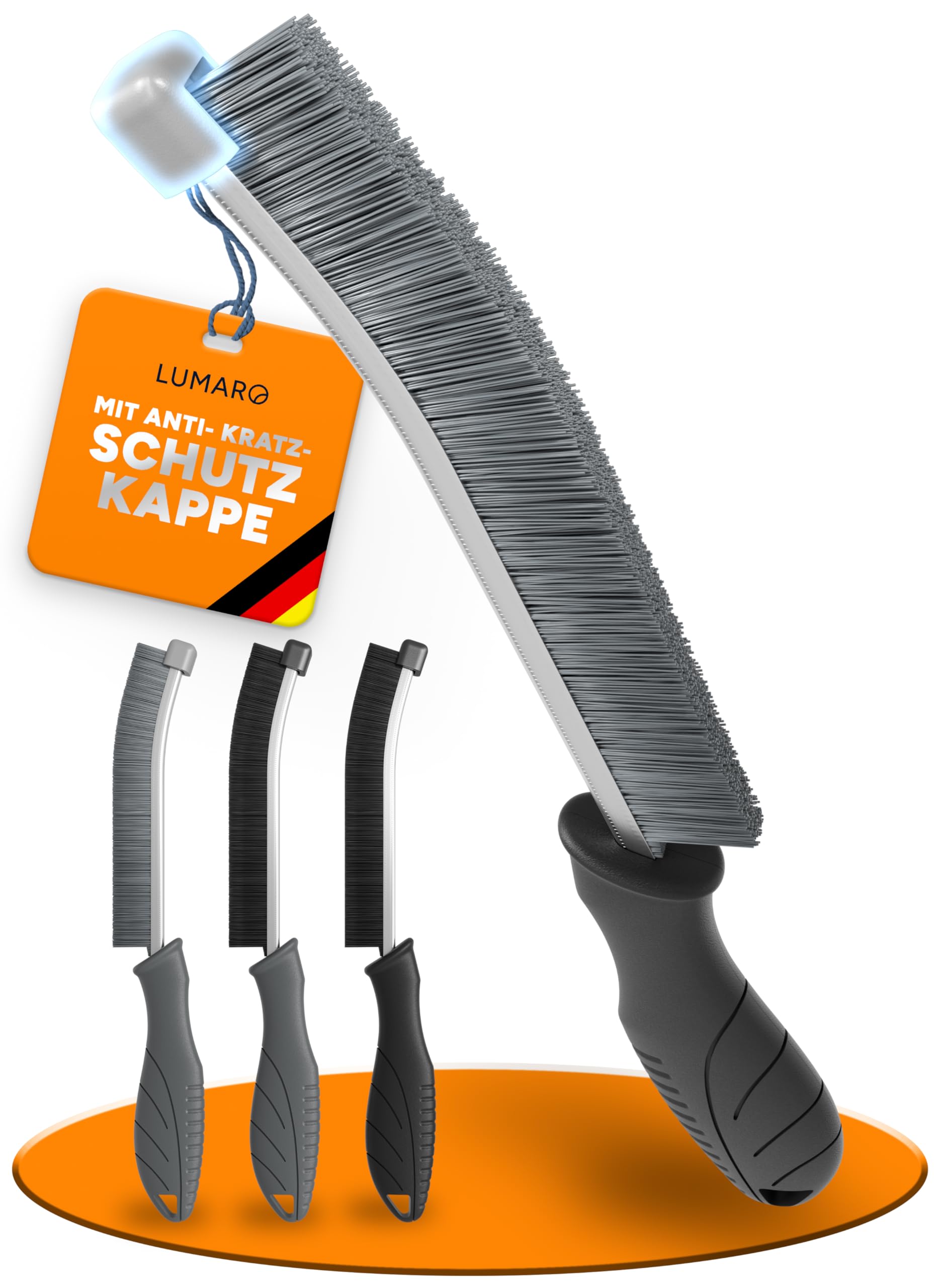 Puh, Fugen reinigen kann echt nerven - aber mit diesem Bürsten-Set von LUMARO wird's zum Kinderspiel! Du kriegst drei verschiedene Bürsten: Zwei mit harten Borsten für starke Verschmutzungen, eine mit weichen Borsten für empfindliche Stellen, und eine gebogene für diese schwer erreichbaren Ecken. Der integrierte Kratzschutz ist genial - keine Angst mehr vor zerkratzten Fliesen oder Silikonfugen! Ob in der Dusche, an Fensterrahmen oder in der Küche - damit kriegst du überall blitzblanke Ergebnisse. Die Borsten sind super robust und halten auch intensives Schrubben aus. Perfekt für Kalk, Seifenreste und anderen hartnäckigen Dreck. Macht die lästige Putzarbeit viel schneller und gründlicher. Einfach mal ausprobieren - du wirst staunen, wie easy Fugenreinigung sein kann!