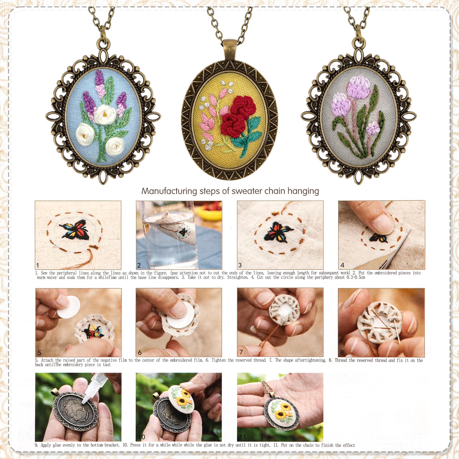 Total süßes DIY-Projekt für kreative Pausen! Das SUNNYCLUE Stickerei-Set bringt dir bei, wie du deine eigenen Halsketten stickst - auch wenn du noch nie eine Nadel in der Hand hattest. Mit der bebilderten Anleitung wird's kinderleicht! Im Set findest du alles für 3 verschiedene Halsketten: Stoff, Stickrahmen, bunte Baumwollfäden, Nadeln, Metall-Ketten und sogar Verschlüsse. Die Materialien sind hochwertig - die Metallteile verformen sich nicht, die Fäden leuchten richtig schön. Perfekt für gemütliche Abende, als Geschenk für die beste Freundin oder um einfach mal abzuschalten. Ob für Weihnachten, Geburtstage oder einfach so - selbstgemachter Schmuck kommt immer gut an! Mach was Einzigartiges mit deinen eigenen Händen!
