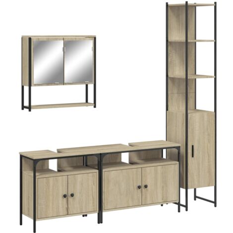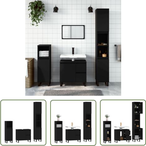 Bring Ordnung in dein Badezimmer mit diesem stylischen 3-teiligen Möbelset! In trendigem Schwarz-Eiche-Design sieht es super modern aus und bietet jede Menge Stauraum für Handtücher, Pflegeprodukte und alles, was du im Bad so brauchst. Aus robustem Holzwerkstoff gefertigt - stabil und langlebig, auch in feuchter Badezimmerluft. Die matte Oberfläche ist pflegeleicht und fügt sich in jeden Einrichtungsstil ein. Das modulare Design gibt dir die Freiheit, die Schränke so anzuordnen, wie es in dein Badezimmer passt. Mit 10 cm Beinhöhe und 2 cm Oberflächenhöhe. Montage ist nötig, aber mit zu zweit geht's easy! Endlich alles ordentlich verstaut und immer griffbereit. Mach dein Badezimmer zur Wohlfühloase!