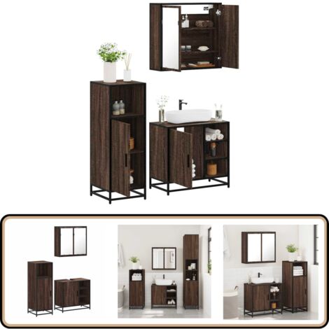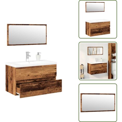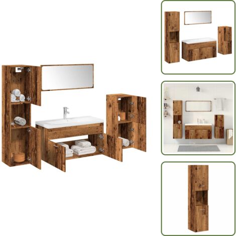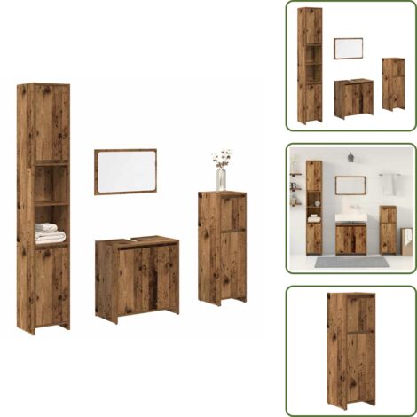 Wow, dieses Badmöbel-Set bringt richtig viel Stil in dein Badezimmer! Die coole Altholz-Optik sieht total edel aus und das Set besteht aus drei Teilen: einem Spiegelschrank (80x20,5x64cm) und zwei Unterschränken (30x30x179cm und 60x32x53,5cm). Aus robustem Holzwerkstoff, der feuchtigkeitsresistent ist und sich super leicht reinigen lässt. Der Waschbeckenunterschrank hat oben eine praktische Öffnung fürs Waschbecken und bietet jede Menge Stauraum für all deine Badezimmer-Utensilien. Mit Türen, damit du alles ordentlich verstauen kannst. Wichtig: Zur Sicherheit bitte mit der Wandhalterung befestigen (Schrauben und Dübel nicht im Lieferumfang). Einfach aufbauen und schon wird dein Bad zum Wohlfühl-Ort!