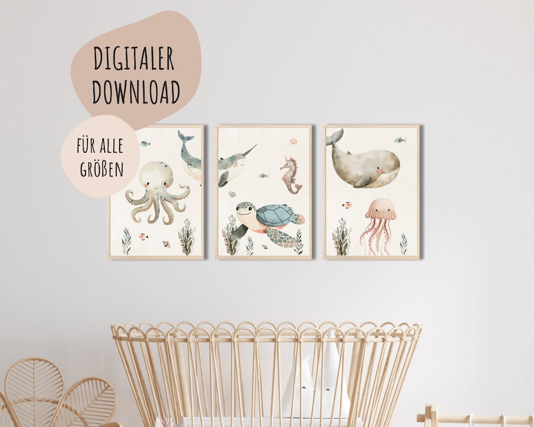 • MeinBaby123 Kinderposter Set - 3x DIN A4 Wandbilder Süße Tiere