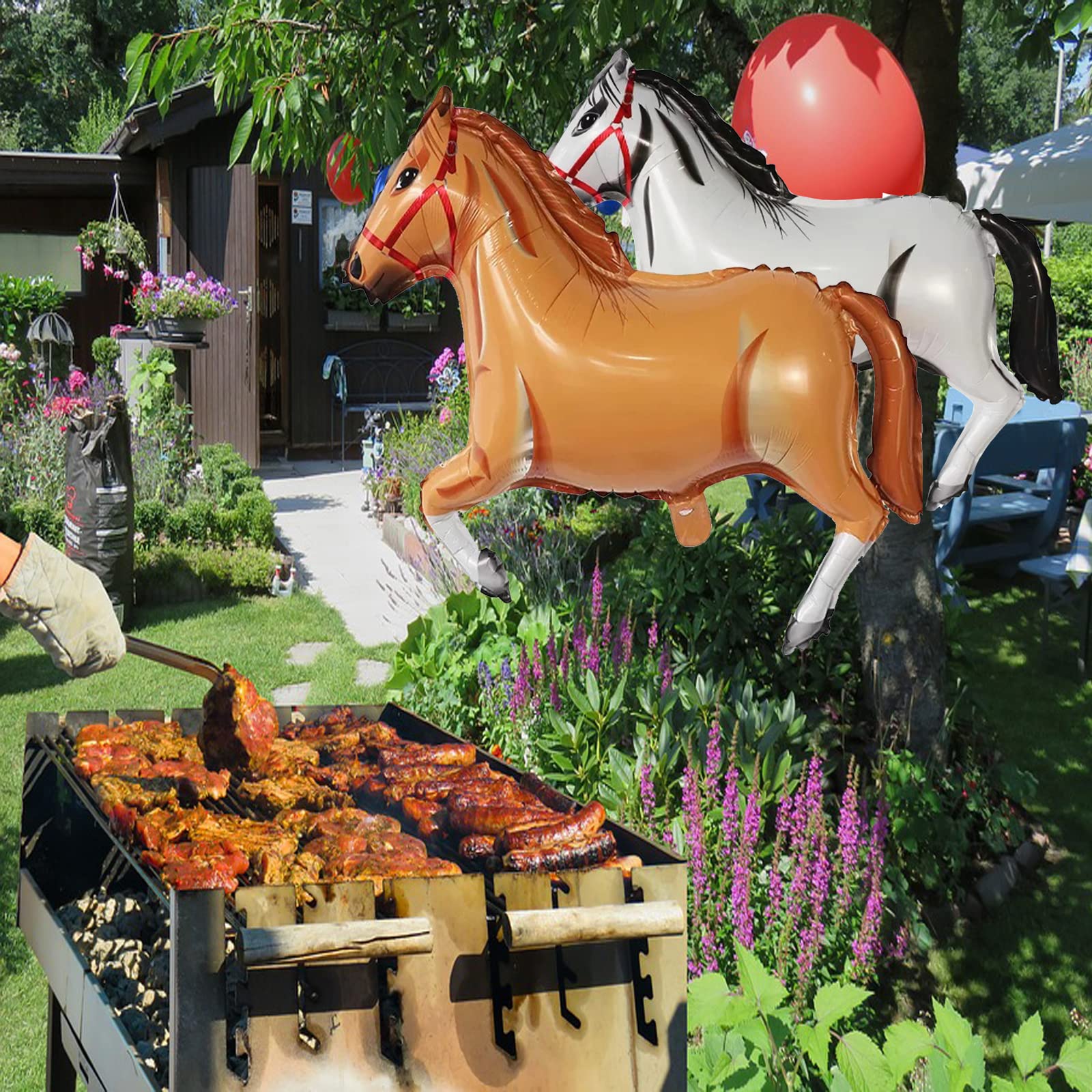 Für alle Pferdefans! Dieses Set mit 4 niedlichen Pferde-Folienballons macht jede Party zum besonderen Erlebnis. Aus hochwertiger Aluminiumfolie gefertigt, halten die Ballons lange die Form und sind wiederverwendbar. Perfekt für Pferde-Geburtstage, Cowboy-Partys oder Reiterhof-Mottos. Einfach mit Helium oder Luft befüllen - das selbstschließende Ventil macht's kinderleicht. Die lebendigen Farben und das detailreiche Design begeistern nicht nur Kinder, sondern auch erwachsene Pferdeliebhaber. Super für Zuhause, aber auch für Kindergarten, Reitschule oder Hotel-Dekoration. Die Ballons sind robust, platzen nicht so schnell und sind absolut ungiftig. Schaffe eine magische Atmosphäre für deine nächste Party - deine Gäste werden begeistert sein!