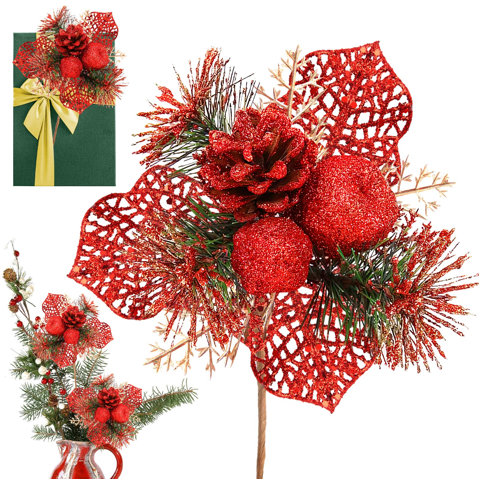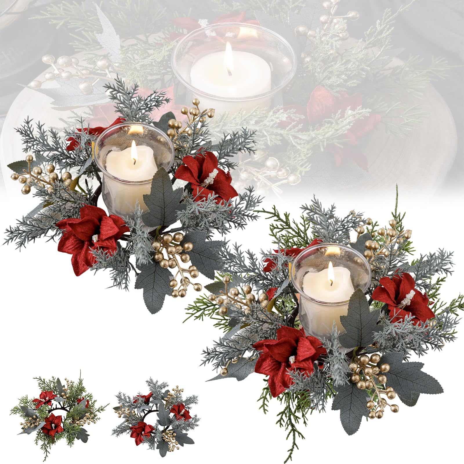 Bring Weihnachtsstimmung in dein Zuhause! Dieses bezaubernde Set mit 4 Mini-Weihnachtskränzen von VALICLUD verwandelt jeden Raum in eine winterliche Wunderland. Mit Tannenzapfen, roten Beeren und verschiedenen Designs wie Geschenkboxen und Glocken.