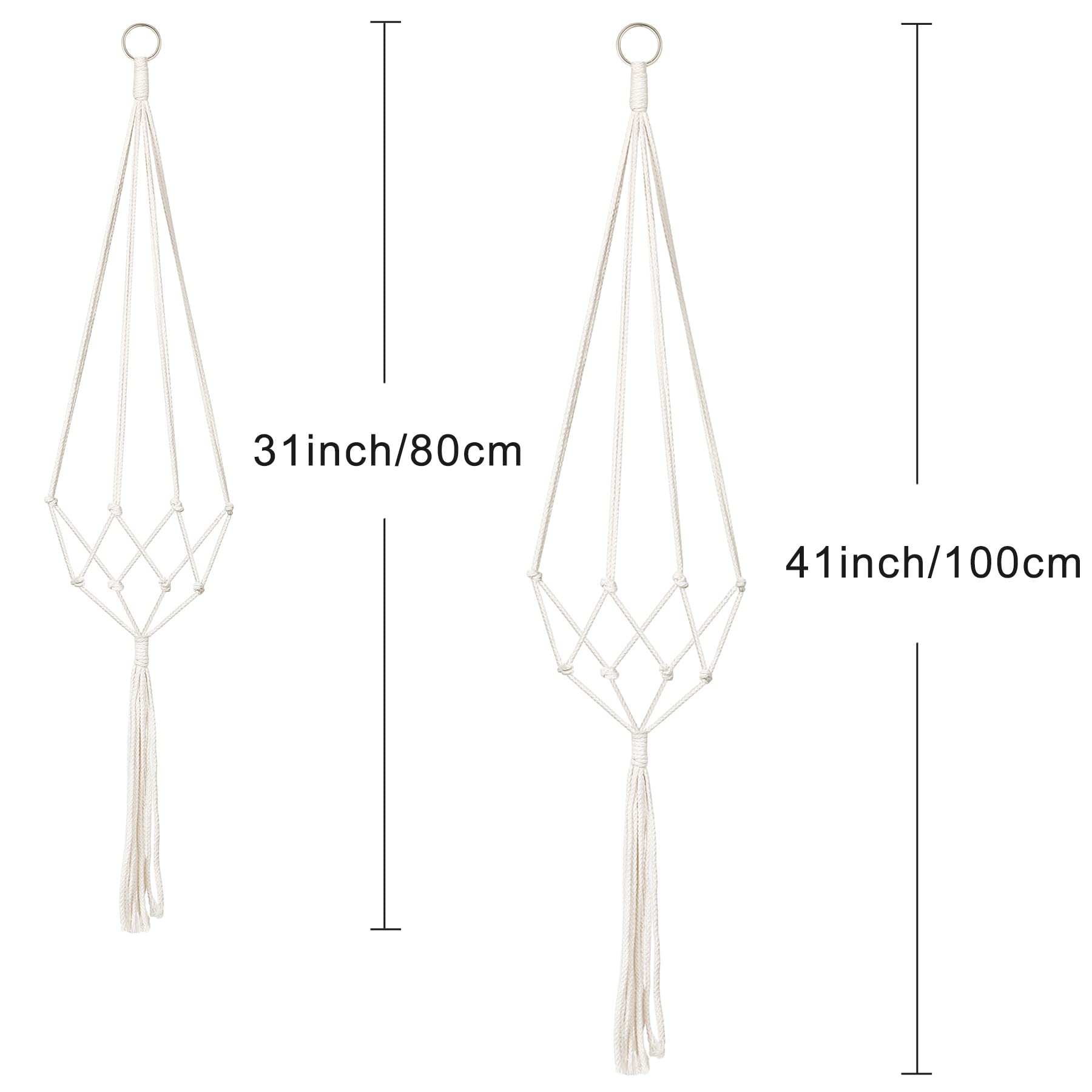 Dieses wunderschöne Makramee-Set bringt boho-flair in dein Zuhause! Mit 4 verschiedenen Blumenampeln - drei mit 100 cm Länge und eine extra-lange mit 180 cm - hast du viele Möglichkeiten, deine Pflanzen stylish in Szene zu setzen. Die natürlichen Baumwollseile sind umweltfreundlich und halten deine Blumentöpfe sicher. Perfekt, um deine Lieblingspflanzen vor neugierigen Haustieren zu schützen oder einfach mehr Grün in deine Wohnung zu bringen. Die mitgelieferten S-Haken machen die Montage supereinfach - ob an der Decke, am Balkon, Fenster oder an Regalen. Die neutralen Farben passen zu jedem Einrichtungsstil und verleihen deinem Wohnzimmer, Flur oder deiner Terrasse einen künstlerischen Touch. Ein tolles Geschenk für Pflanzenliebhaber oder um deinem Zuhause das gewisse Etwas zu verleihen!