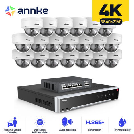 Rundum-Sicherheit in 4K! Dieses ANNKE Kamera-System mit 8 PoE Kameras liefert gestochen scharfe Bilder. 4K Ultra HD Auflösung (8MP) - jedes Detail ist erkennbar. Mit 32CH NVR - erweiterbar auf bis zu 32 Kameras!