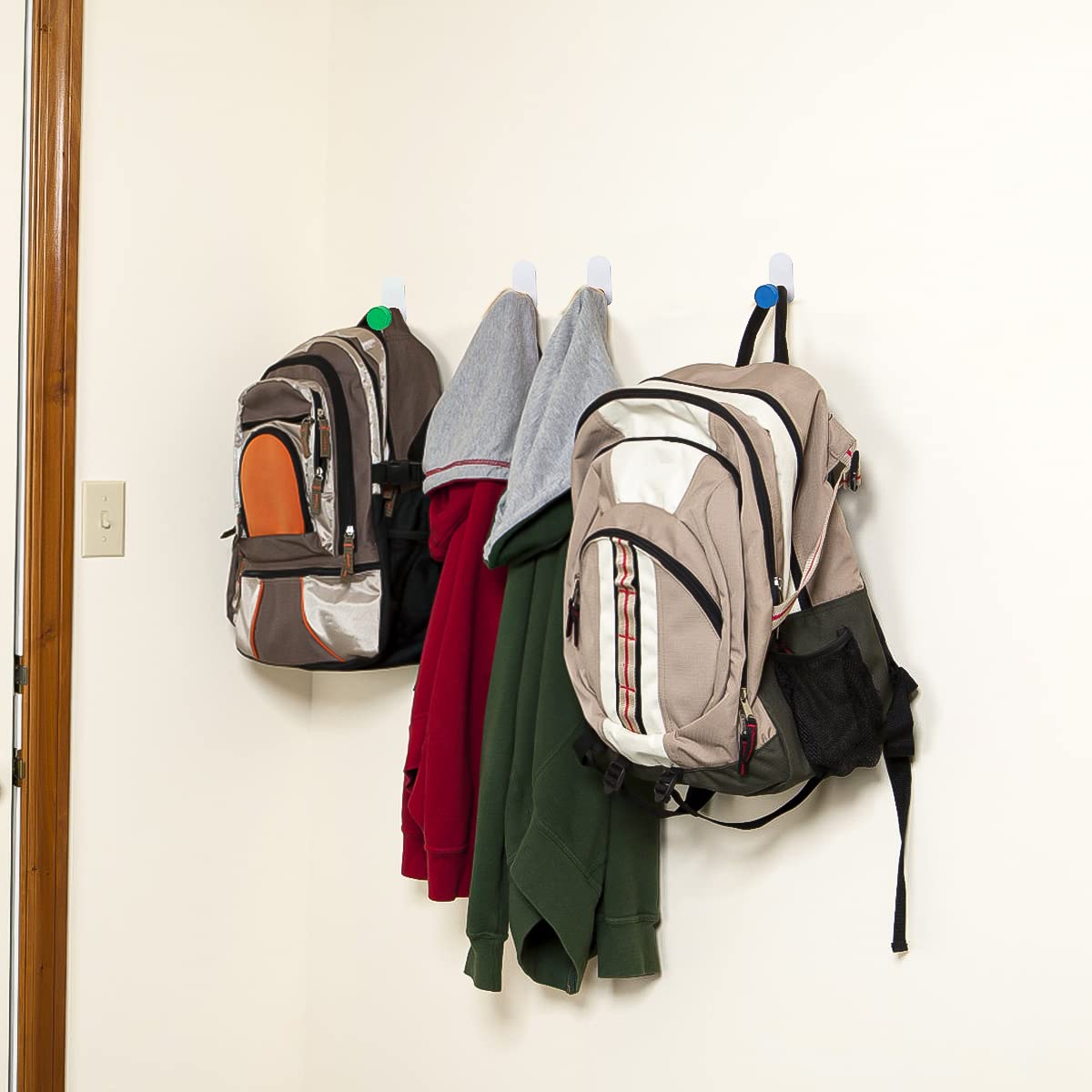 Diese niedlichen Wandhaken in bunten Makaron-Farben bringen Ordnung und Farbe in dein Zuhause! Aus Metall und Holz gefertigt, sind sie nicht nur hübsch anzusehen, sondern auch robust. Tragkraft bis 2kg - perfekt für Handtücher, Kleidung, Taschen oder Schmuck. Ganz ohne Bohren: Einfach Schutzfolie abziehen, an die Wand drücken und nach 24 Stunden belasten. Ideal für Bad, Schlafzimmer, Küche oder Kinderzimmer. Im 5er-Set mit verschiedenen Farben - für mehr Ordnung mit Style!