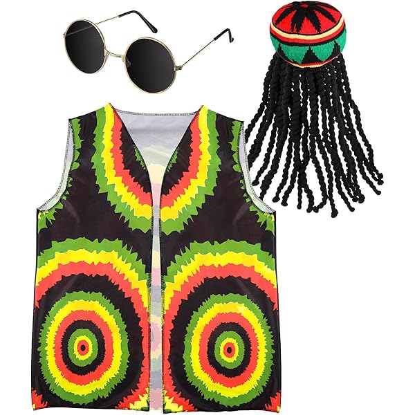 Bring Karibik-Feeling auf jede Party! Dieses komplette Rasta Kostüm-Set enthält alles, was du für den perfekten Jamaika-Look brauchst: Eine bunte Weste (63cm lang), einen Rasta-Hut mit schwarzen Dreadlocks (60-70cm dehnbar, 44cm Dreadlocks), ein Acryl-Armband, eine Halskette und eine coole Sonnenbrille - alles in den klassischen Rasta-Farben Rot, Grün, Schwarz und Gelb. Die Einheitsgrößen passen fast jedem und die hochwertigen Materialien sorgen für langanhaltenden Spaß. Perfekt für Karneval, Halloween, Mottopartys, Festivals oder kulturelle Veranstaltungen. Einfach anziehen und sofort in Partystimmung kommen! Ob für Männer oder Frauen - dieses Set verwandelt dich in einen echten Reggae-Star. Mach deinen Auftritt unvergesslich und tanze zur rhythmischen Musik. Einfach stylisch, einfach fröhlich, einfach perfekt für jede Feier!
