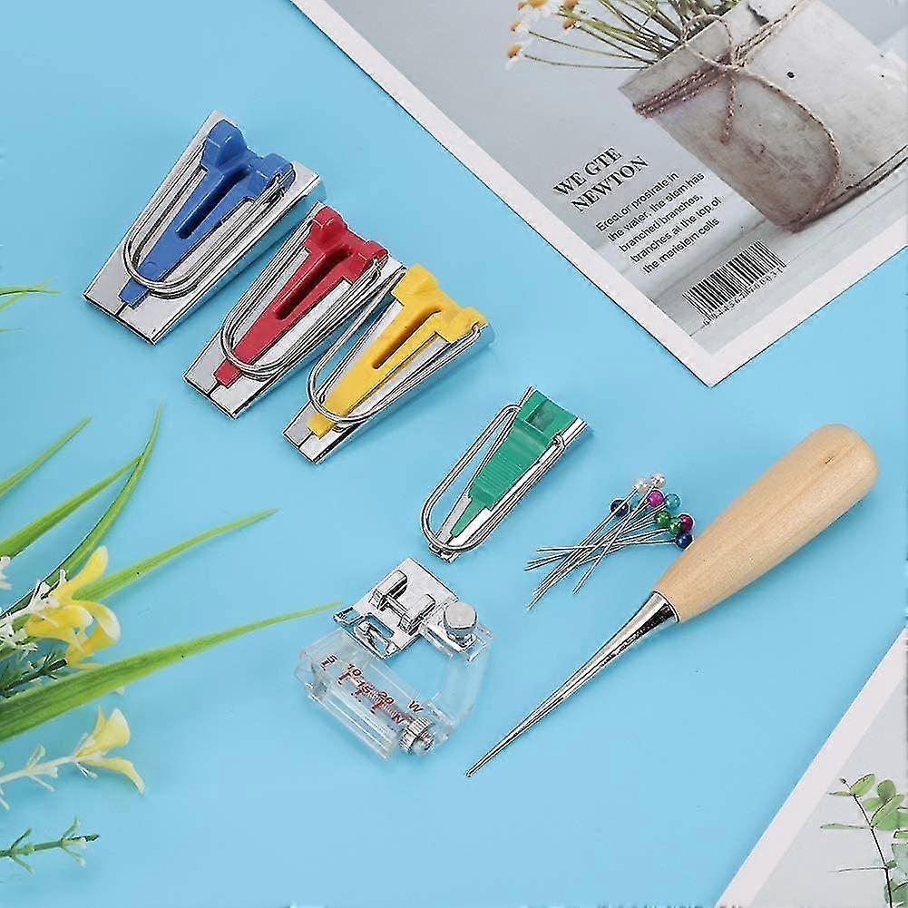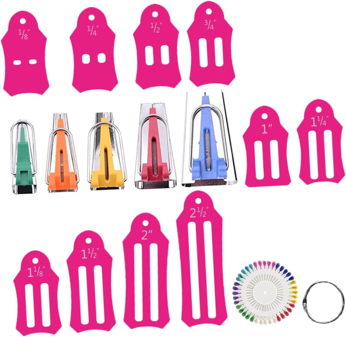 Total praktisches Set für alle Näh-Begeisterten! 5 verschiedene Einfassungs-Werkzeuge in den Größen 6mm, 9mm, 12mm, 18mm und 25mm. Damit kannst du super einfach Schrägband herstellen - der Stoff wird automatisch in der Mitte gefaltet! Mit rutschfester Kunststoff-Führung für perfekte Ergebnisse. Im Set enthalten: 5 Binding Tools, 1 Holzkegel, 1 Saum-Nähfuß, 50 Glasperlennadeln und eine Aufbewahrungstasche. Einfach zu bedienen, in wenigen Minuten hast du professionelles Schrägband. Ideal für Quilting, Näharbeiten oder DIY-Projekte. Spart Zeit und Geld - alles in einem Set! Mach deine Näharbeiten noch professioneller!