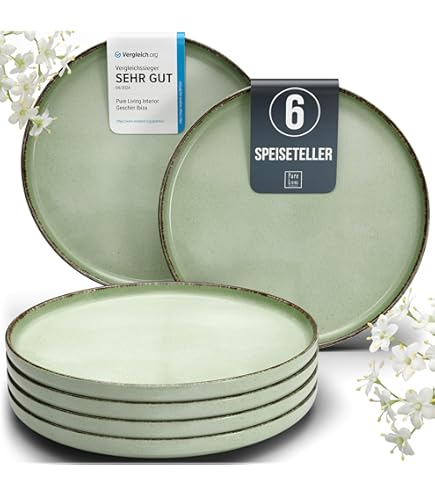 Dieses Bluweet Teller-Set ist einfach nur schön! 6 Teller à 19cm im eleganten Dunkelgrün mit feiner Punktstruktur - perfekt für den täglichen Gebrauch und besondere Anlässe. Aus hochwertigem Steingut, kratzfest, mikrowellengeeignet und spülmaschinenfest. Stell dir vor: Dein Essen sieht auf diesen Tellern gleich noch appetitlicher aus, ob Frühstück, Mittag- oder Abendessen. Die glatte Oberfläche macht das Reinigen zum Kinderspiel, und die robuste Verarbeitung sorgt für lange Freude. Auch super als Geschenk zur Hochzeit, zum Einzug oder Geburtstag. Die Teller sind nicht zu schwer, aber dennoch stabil und wertig. Perfekt für Familien, Paare oder Singles, die gerne Gäste bewirten. Also, mehr Stil auf deinem Esstisch - jeden Tag!