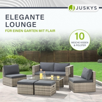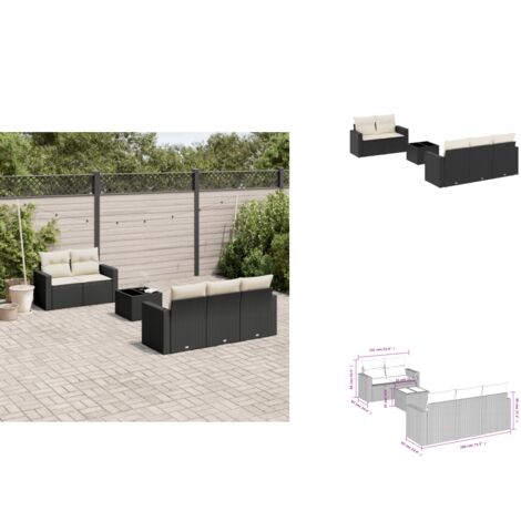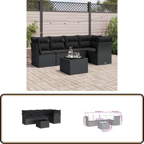 Entspannen im Freien war noch nie so gemütlich! Dieses 6-teilige Outdoor-Sofa-Set verwandelt deinen Garten, Balkon oder Terrasse in eine Wohlfühl-Oase. Aus wetterfestem Poly-Rattan auf pulverbeschichtetem Stahlgestell - UV-beständig und langlebig. Inklusive 2 Mittelsofas, 2 Armlehnensofas, 1 Tisch und 1 Hocker. Mit cremeweißen Kissen aus 100% Polyester (abnehmbar und waschbar). Jedes Möbelstück hat Stauraum unter der Sitzfläche - praktisch für Kissen oder Gartenutensilien! Der Tisch mit Hartglas-Platte ist leicht zu reinigen. Maximale Belastung 110kg pro Sitz. Verstellbare Füße für unebenen Untergrund. Einfacher Zusammenbau - schon kannst du die Sonne genießen! Perfekt für gemütliche Sommerabende mit Familie und Freunden.