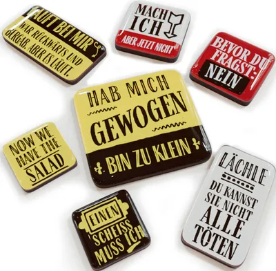Hey, dein Kühlschrank sieht etwas langweilig aus? Mit diesen mega-coolen LANOLU Magneten wird er zum echten Hingucker! Das 7er-Set kommt mit lustigen Sprüchen und typischen LANOLU Retro-Designs - einfach unwiderstehlich! Jeder Magnet ist mit Epoxidharz überzogen, glänzt edel und ist super langlebig. Im Gegensatz zu billigen Folienstreifen haben diese Teile eine feste Mitte und haften bombenfest auf allen metallischen Oberflächen. Ob Kühlschrank, Whiteboard oder Magnetwand - die kleinen Helfer bringen sofort gute Laune! Kommt in einer süßen Box - perfekt als Mitbringsel oder kleines Geschenk. Über 300.000 zufriedene Kunden vertrauen auf LANOLU Qualität - und du? Unterstützt damit übrigens ein junges Start-Up aus Deutschland. Einfach anbringen, lächeln und sich jeden Tag freuen! Die Magnete lassen sich rückstandslos entfernen und wieder anbringen - also ideal für Mieter oder wenn du mal umgestalten willst. Mach deine Küche zur Wohlfühloase - mit einem Lächeln garantiert!