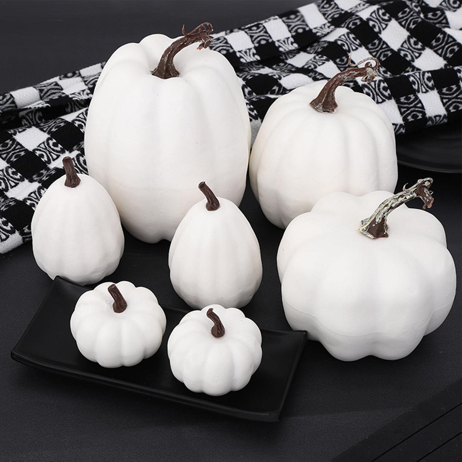 • YUHGENWI Künstliche Kürbisse Set - 7 Weiße Schaumkürbisse Für Herbstdeko