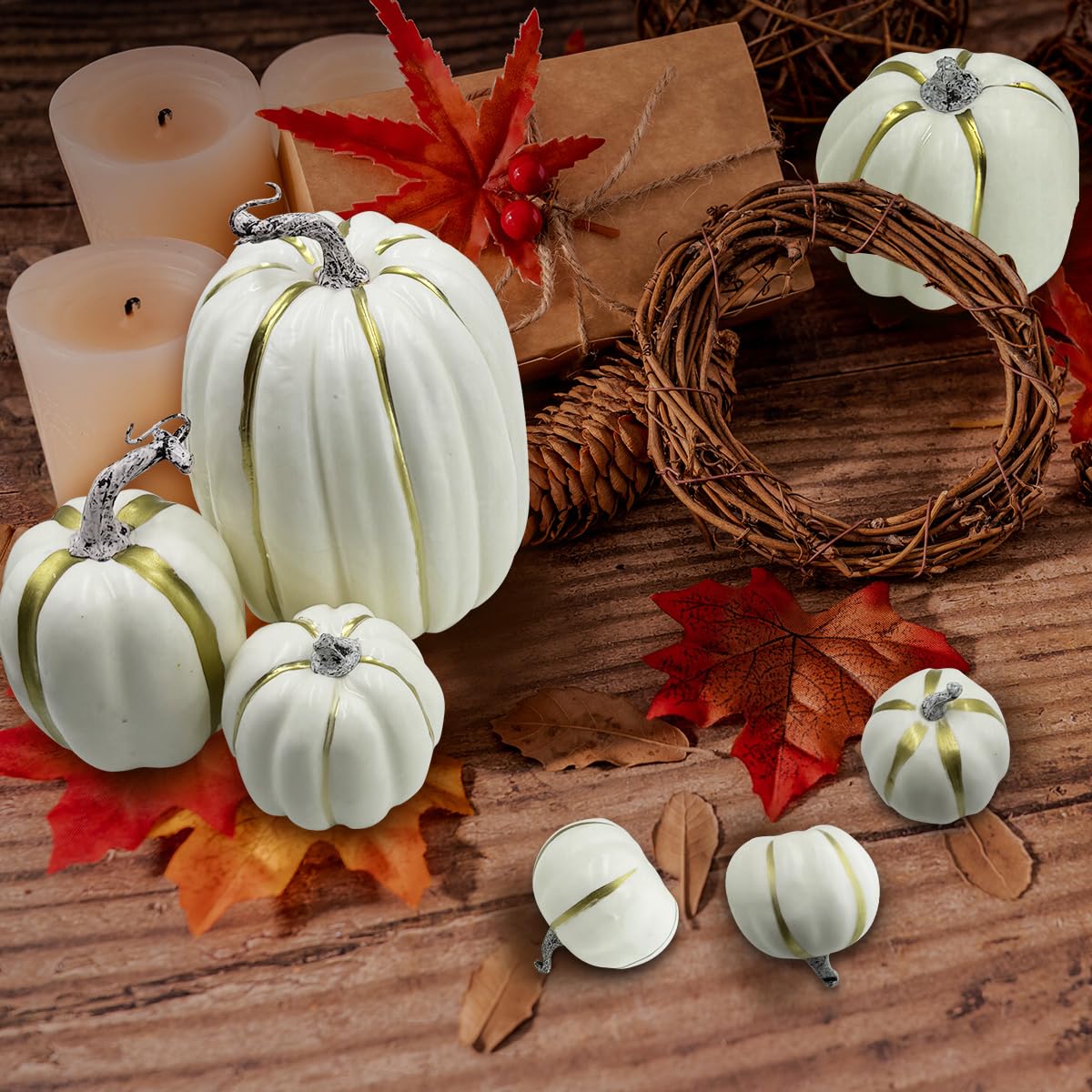 YUHGENWI Künstliche Kürbisse Set - 7 Weiße Schaumkürbisse Für Herbstdeko
