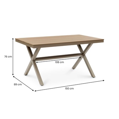 Dieses LANOX Gartenmöbel-Set macht deine Terrasse zur Wohlfühloase! Im Set enthalten: 6 bequeme Sessel und 1 großer Esstisch (150x80x74 cm). Der Rahmen aus robustem, rostfreiem Aluminium (48x35x1.5mm Rohre) mit Edelstahlschrauben ist extrem langlebig. Die Tischplatte aus 14mm starkem WPC-Kunstholz in Teak-Optik ist pflegeleicht und wetterbeständig. Jeder Stuhl trägt bis zu 140 kg, der Tisch 70 kg - absolute Stabilität! Die Polster mit 22D-Schaumstoff und atmungsaktivem Stoffbezug (220g/m²) bieten Premium-Komfort. Ergonomische Sitzform mit geschwungenen Armlehnen aus 12mm Kunstholz. In nur 20 Minuten montiert - sofort einsatzbereit für Garten, Terrasse, Balkon oder Wintergarten. Wetterfest, UV-beständig und in Beige erhältlich. Perfekt für gesellige Stunden im Freien!