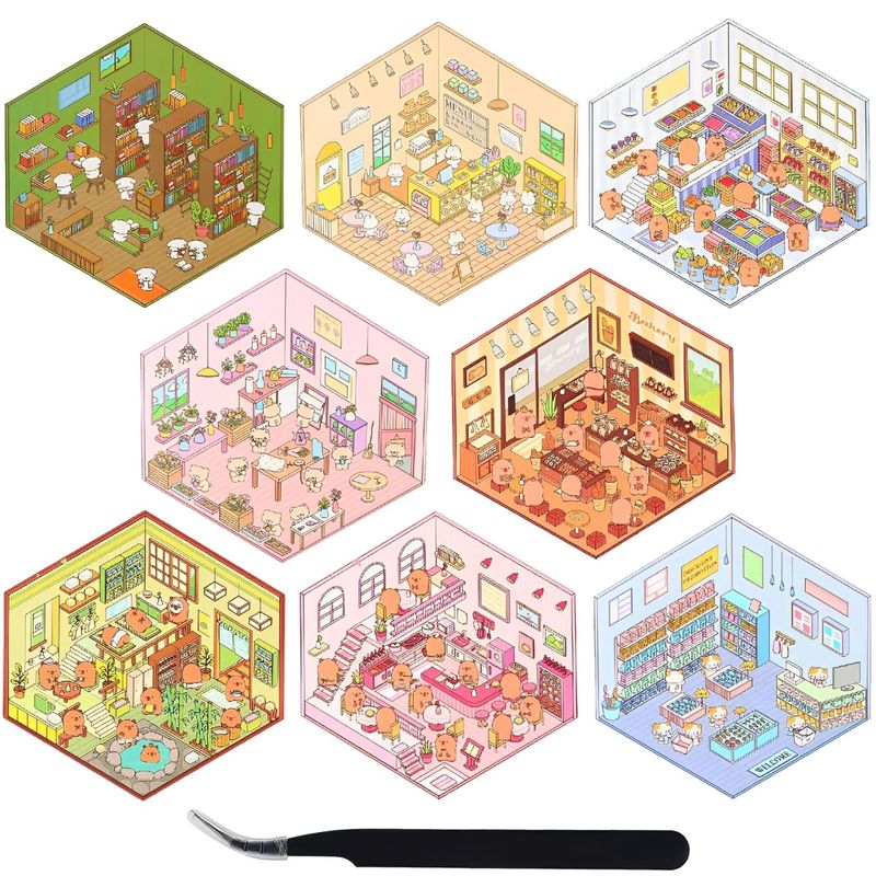 TYXHXTF 3D House Sticker Set - 8 Miniatur Häuser Zum Selbergestalten
