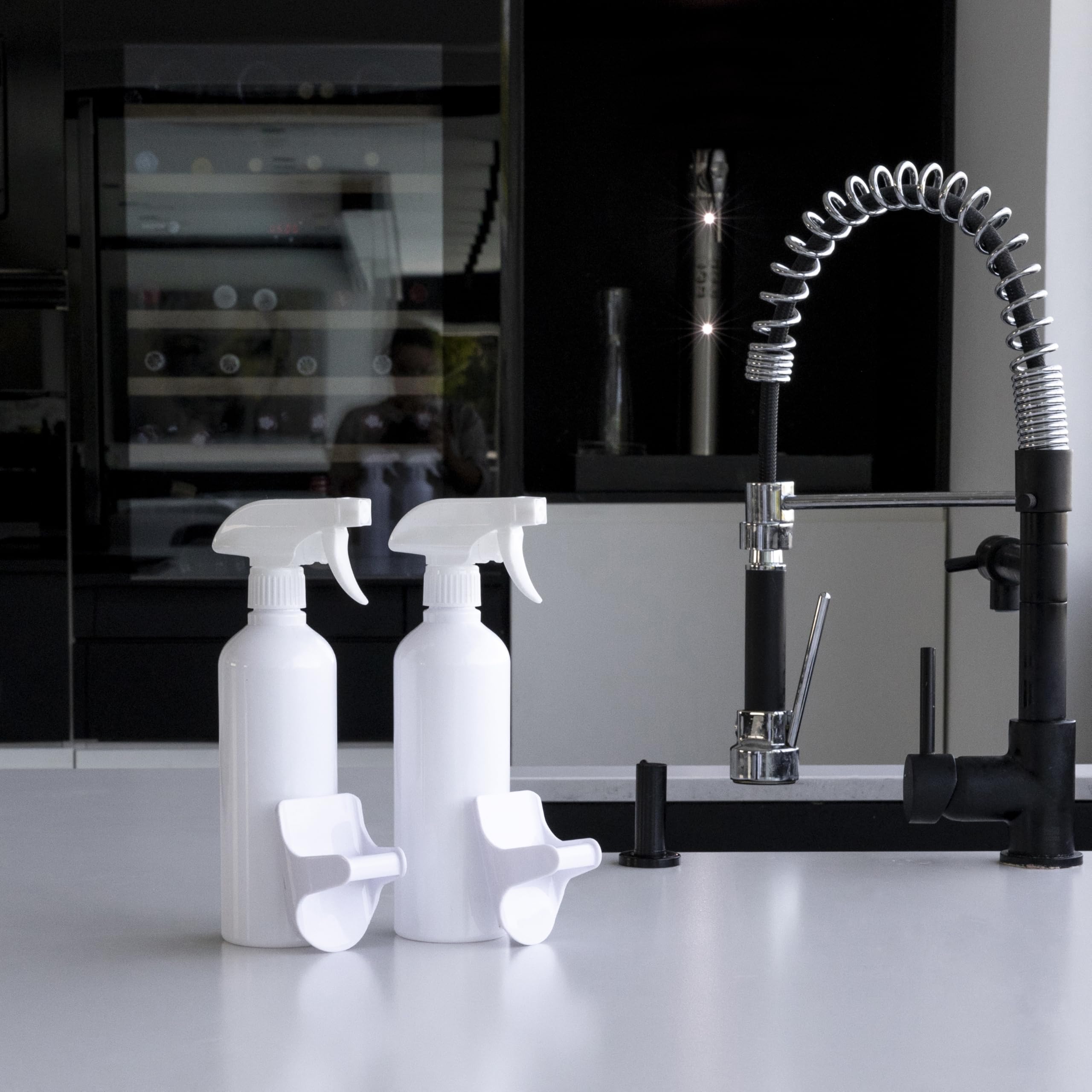 Sprühflaschen Halterung Set - 8 Selbstklebende Haken + 2 Sprühflaschen Für Küche & Bad