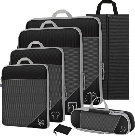 Schluss mit Chaos im Koffer! Dieses 9-teilige Packwürfel-Set bringt Ordnung in dein Reisegepäck. Endlich findest du alles sofort wieder - ohne alles auspacken zu müssen. Die Mesh-Oberseiten lassen dich sehen was drin ist und sorgen für gute Belüftung.