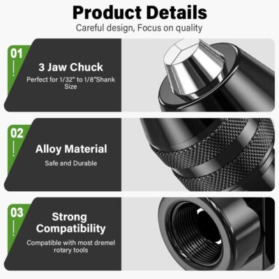 Für alle Dremel-Fans! Dieses 15-teilige Set enthält alles, was du für präzise Arbeiten brauchst: 1 schlüsselloses Bohrfutter, 10 Messing-Spannzangen (0,3mm bis 3,2mm), 2 Metallmuttern und passende Schlüssel. Kompatibel mit Dremel 4000, 3000, 300, 200, 100, 8200 und anderen Modellen. Die Messing-Spannzangen sind korrosionsbeständig und halten auch bei hohen Drehzahlen sicher. Perfekt für Feilen, Schleifwalzen, Polierscheiben, Drahtbürsten und Trennscheiben. Ob für Holz- und Metallbearbeitung, Modellbau oder Uhrenreparatur - mit diesem Set bist du bestens ausgestattet! Einfach wechseln und loslegen - kein Gefummel mehr mit kleinen Werkzeugen!
