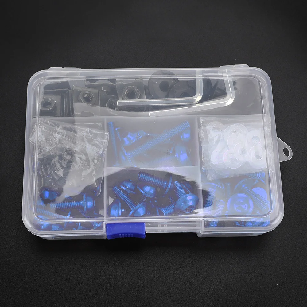 Deine Motorrad-Verkleidungsschrauben sind rostig oder beschädigt? Dieses komplette Schraubenset gibt deinem Bike einen frischen Look! Speziell kompatibel mit verschiedenen BMW-Modellen wie R1200S, R1200ST, R1150RT, F650CS, R1100S, R1150R, S1000RR und mehr. Hergestellt aus leichtem Aluminium in verschiedenen Farben, reduziert das Gesamtgewicht und sieht dabei stylisch aus. Die Linsenkopf-Schrauben sind besonders einfach zu reinigen. Das Set kommt in einer praktischen Kunststoffbox mit separaten Fächern, sodass du immer Ordnung hast. Einfache Installation - die Schrauben ersetzen die meisten Befestigungselemente an Verkleidungen, Windschutzscheiben, Seitenverkleidungen und Kotflügeln. Wichtig: Aluminiumschrauben nicht zu fest anziehen, da sie sonst beschädigt werden können. Verleihe deinem Motorrad nicht nur ein neues Aussehen, sondern mach es auch windbeständiger für mehr Fahrspaß. Ein Muss für jeden Motorrad-Fan, der Wert auf Details legt!