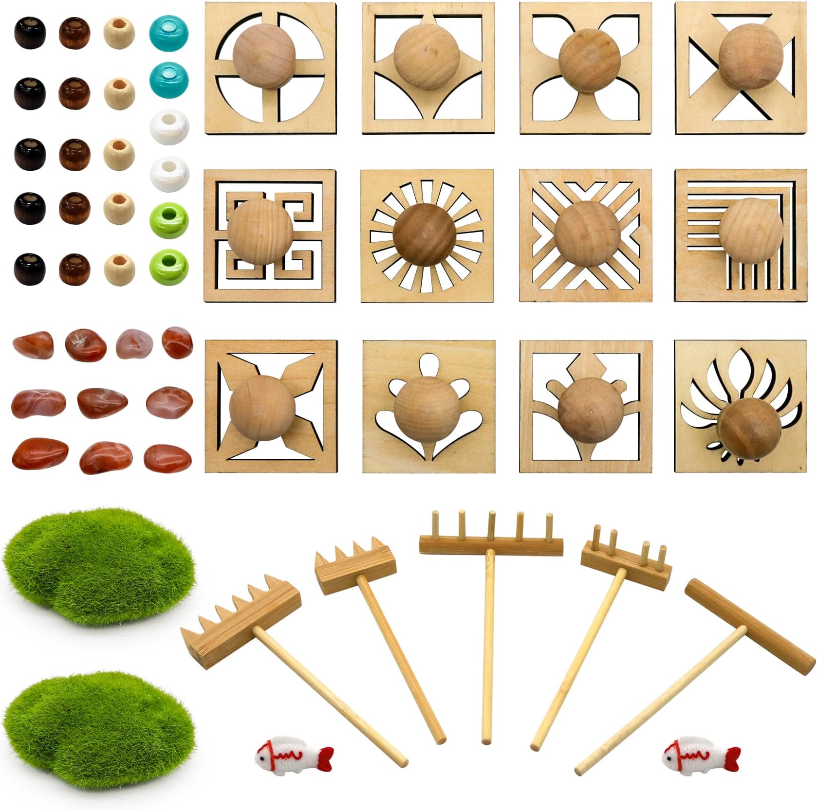 Suchst du etwas für mehr Entspannung im Alltag? Dieses Mini Zen Garten Set ist genau das Richtige! Aus natürlichem Bambus gefertigt - super robust und langlebig. Im Set sind 4 verschiedene Werkzeuge: kleiner Rechen mit 5 Zähnen, Krallen-Rechen, 4-Zahn-Rechen und T-Form Werkzeug. Perfekt für deinen Mini-Zengarten, für Sukkulenten, Topfpflanzen oder einfach als coole Tischdekoration! Die Mini-Größe (ca. 14-18 cm) ist ideal für kleine Flächen. Macht sich super auf dem Schreibtisch - wenn du mal eine Pause brauchst, einfach ein paar Muster in den Sand zeichnen! Total beruhigend! Auch als Geschenk eine super Idee - wer freut sich nicht über ein bisschen Zen im Alltag? Einfach zu verstauen und braucht kaum Platz. Ob für Feng Shui, Meditation oder einfach nur als hübsche Deko - dieses Set bringt Ruhe und Harmonie in deine vier Wände! Die natürliche Bambus-Optik sieht einfach klasse aus und passt zu jedem Einrichtungsstil. Einfach ausprobieren und entspannen!