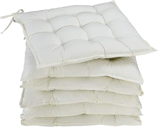 Mach deine Stühle richtig gemütlich mit diesem praktischen 6er-Set Sitzkissen von DETEX! Die Auflagen sind superweich und bieten mit ihrer 5 cm dicken Polsterung mit Visko-Effekt optimalen Sitzkomfort - sie passen sich deinem Körper an und gehen danach wieder in die Ursprungsform zurück. Praktische Haltebänder sorgen dafür, dass die Kissen nicht verrutschen. Hergestellt aus 55% Baumwolle und 45% Polyester sind sie nicht nur kuschelweich, sondern auch richtig robust. Der Wasser-Abperleffekt schützt vor Feuchtigkeit - einfach abwischen und fertig! Bei 30°C waschbar, also super pflegeleicht. Mit den Maßen 43x39 cm passen sie perfekt auf die meisten Gartenstühle, Esszimmerstühle oder Balkonmöbel. Die atmungsaktive Füllung mit Holzfasermembran sorgt für ein angenehmes Sitzgefühl auch an warmen Tagen. In dezentem Creme passt das Design zu jeder Einrichtung - ob drinnen oder draußen!