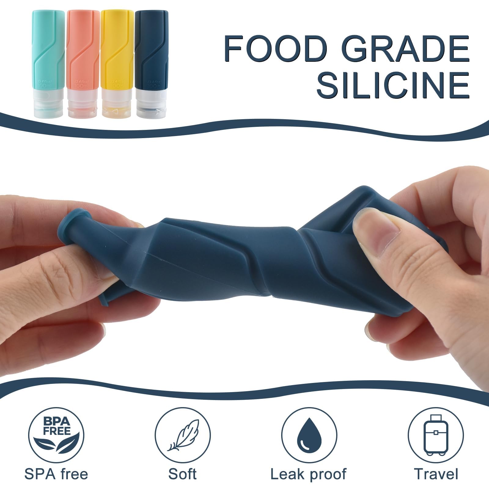 Mann, dieses Reiseflaschen-Set ist perfekt für Handgepäck! TSA-konform mit 4x89ml Flaschen und 4x30ml Dosen - alles passt in den klaren Beutel für die Sicherheitskontrolle. Aus lebensmittelechtem BPA-freiem Silikon - weich und leicht zu drücken.\n\nDie dreifache Abdichtung mit Gewindekappe, Einweg-Ventil und dickem Silikon sorgt dafür, dass wirklich nix ausläuft - selbst kopfüber nicht! Die großen Öffnungen machen Befüllen und Reinigen super einfach.\n\nPerfekt für Shampoo, Duschgel, Lotion oder Cremes. Wiederverwendbar - gut für die Umwelt! Einfach packen und entspannt reisen - ohne Kleckerei!