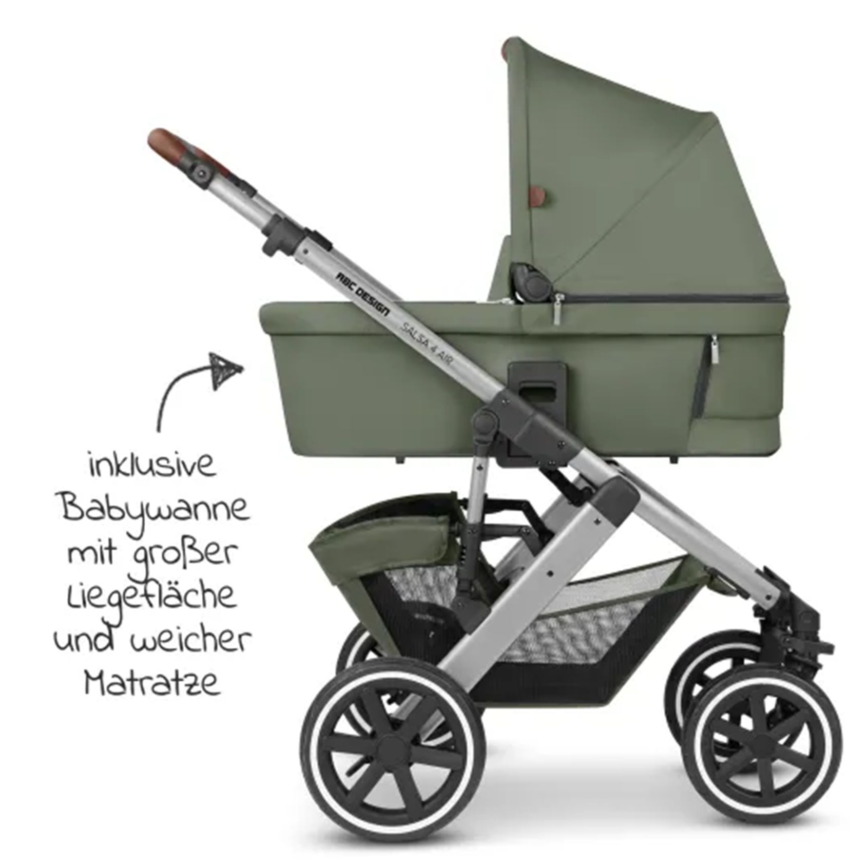 • BabyLux Trailux 3in1 Kinderwagen Set - Babywanne, Buggy & Autoschale In Bottle Green