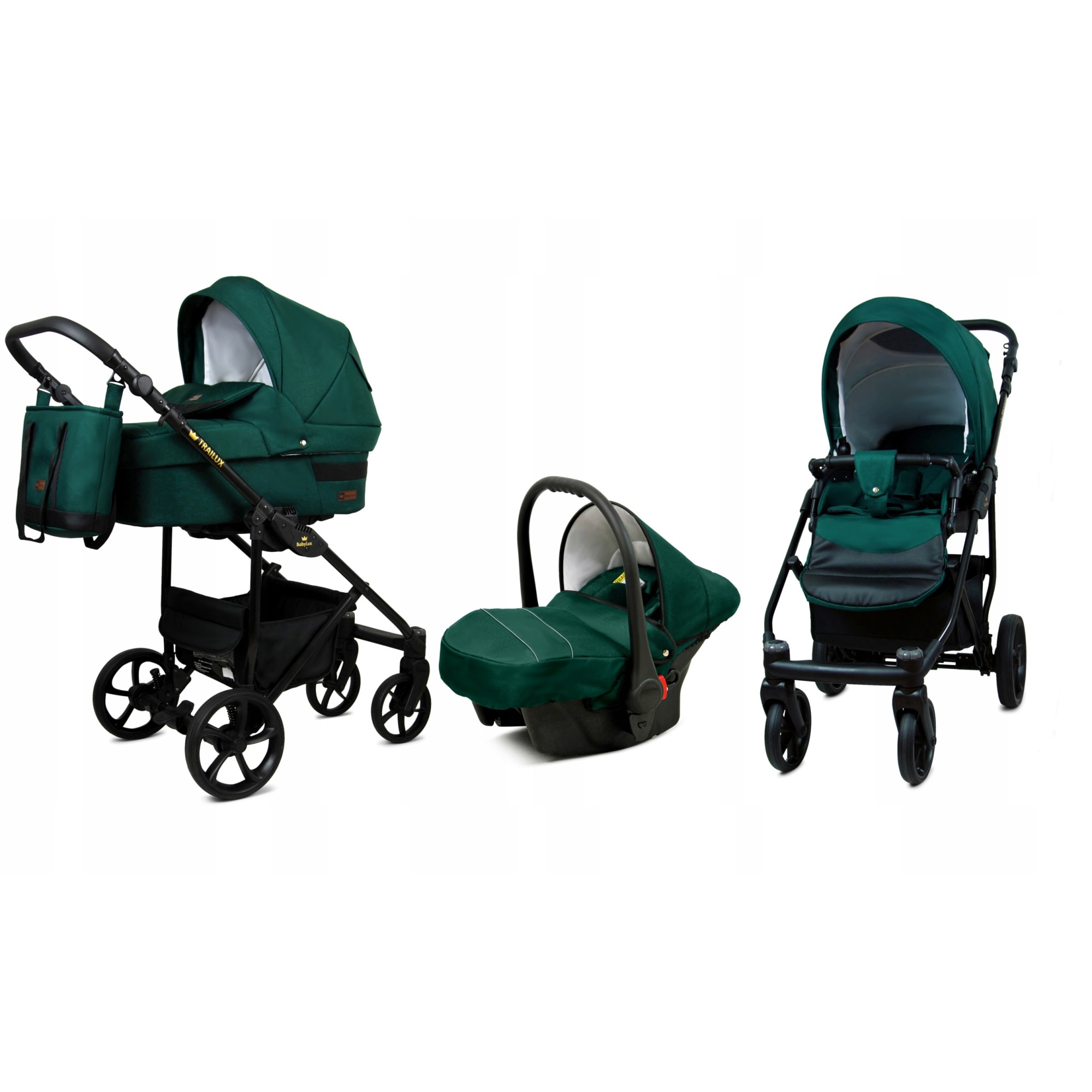 BabyLux Trailux 3in1 Kinderwagen Set - Babywanne, Buggy & Autoschale In Bottle Green
