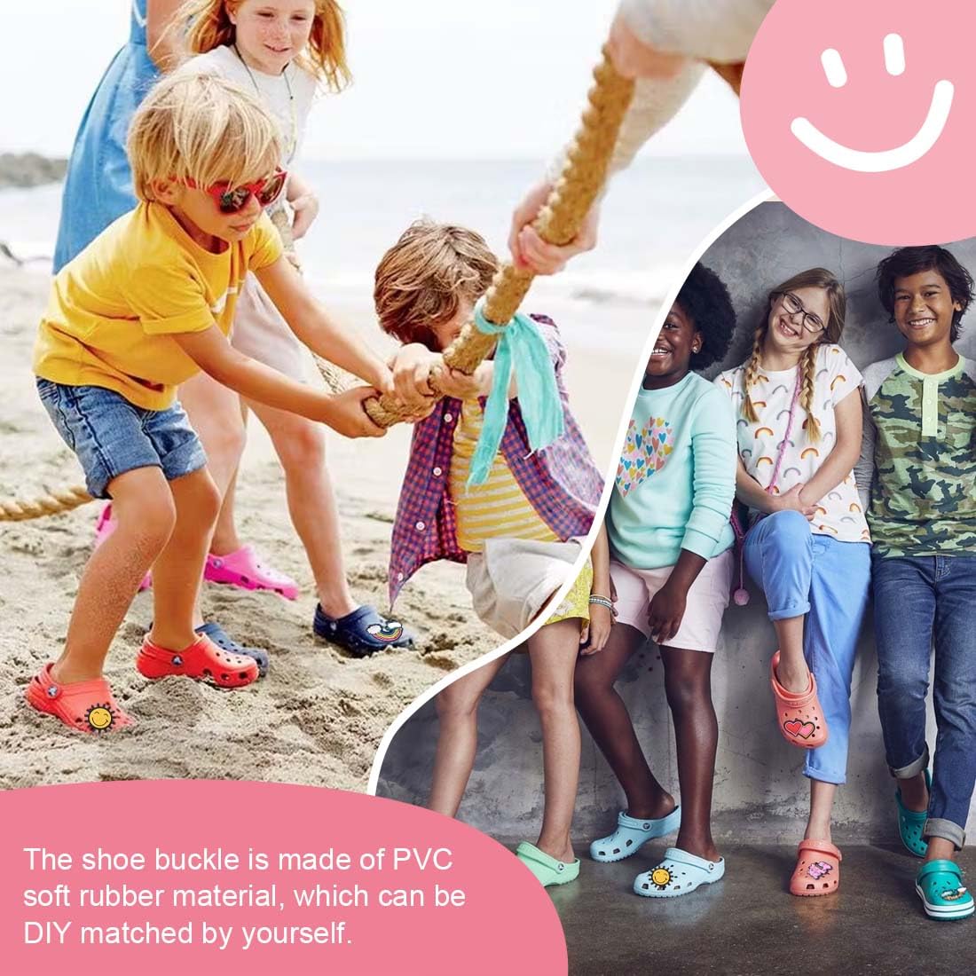 So werden Kinderschuhe zum echten Hingucker! Mit diesen 25 bunten Schuh-Charms verwandelst du langweilige Clogs und Sandalen im Handumdrehen in coole Unikate. Jedes Set enthält verschiedene süße Cartoon-Motive, die Kinderaugen zum Leuchten bringen. Aus hochwertigem PVC gefertigt, sind die Anhänger wasserdicht, ungiftig und super langlebig - sie fallen nicht so leicht ab. Mit einem Durchmesser von 0,47 Zoll (ca. 1,2 cm) passen sie perfekt auf die meisten Schuhe mit Löchern. Aber das ist noch nicht alles: Die kleinen Charms eignen sich auch super für Armbänder, Taschen, Hüte oder Geldbörsen. Einfach im 45-Grad-Winkel in die Schuhlöcher stecken - zum Rausnehmen vorsichtig von unten drücken. Perfekt als Geburtstagsgeschenk, für die Party oder einfach mal so. Mach deine Schuhe zum absoluten Lieblingsstück!