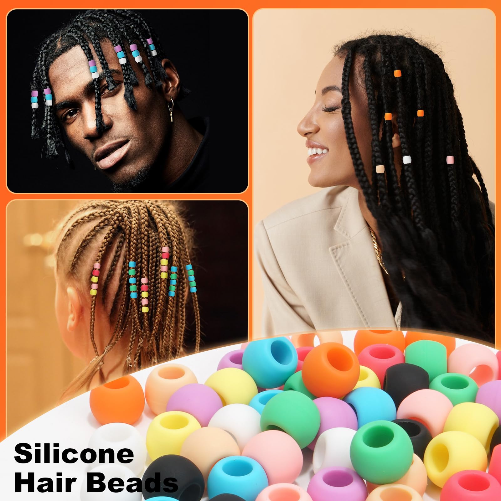 Kreative Frisuren-Ideen gefällig? Dieses umfangreiche Set mit 160 bunten Silikon-Haarperlen in 4 verschiedenen Formen bringt Farbe in jede Frisur! Die weichen, hautfreundlichen Silikonperlen sind super einfach zu verwenden - einfach in die Zöpfe fädeln und festziehen. Inklusive 100 Gummibänder und 3 Perlennadeln für müheloses Flechten. Perfekt für kleine Mädchen, Teenager oder alle, die ihren Frisuren etwas Besonderes verleihen möchten. Ob für den Alltag, Geburtstagsfeiern, Festivals oder besondere Anlässe - diese Perlen machen jede Frisur zum Hingucker. Die großen Innendurchmesser passen auch zu dicken Zöpfen und die lebendigen Regenbogenfarben sorgen für gute Laune. Kein Zerbrechen wie bei Plastikperlen - diese Silikonperlen sind langlebig und flexibel. Lass deiner Kreativität freien Lauf und gestalte einzigartige Frisuren-Kreationen!
