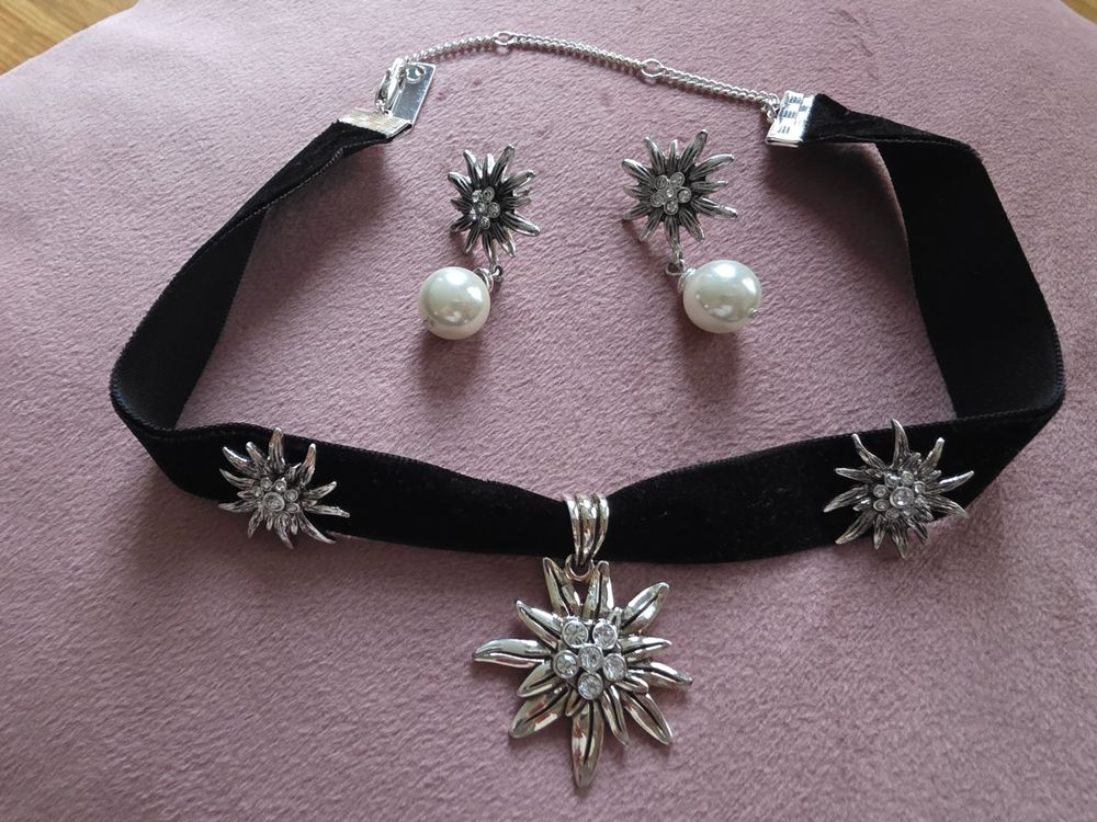 Für alle Trachten-Fans! Dieses Edelweiß-Schmuckset ist einfach nur traumhaft schön. Das komplette Set besteht aus einer Halskette, Ohrringen und einem Armband - alles im harmonischen Edelweiß-Design. Perfekt abgestimmt für einen rundum stimmigen Look.