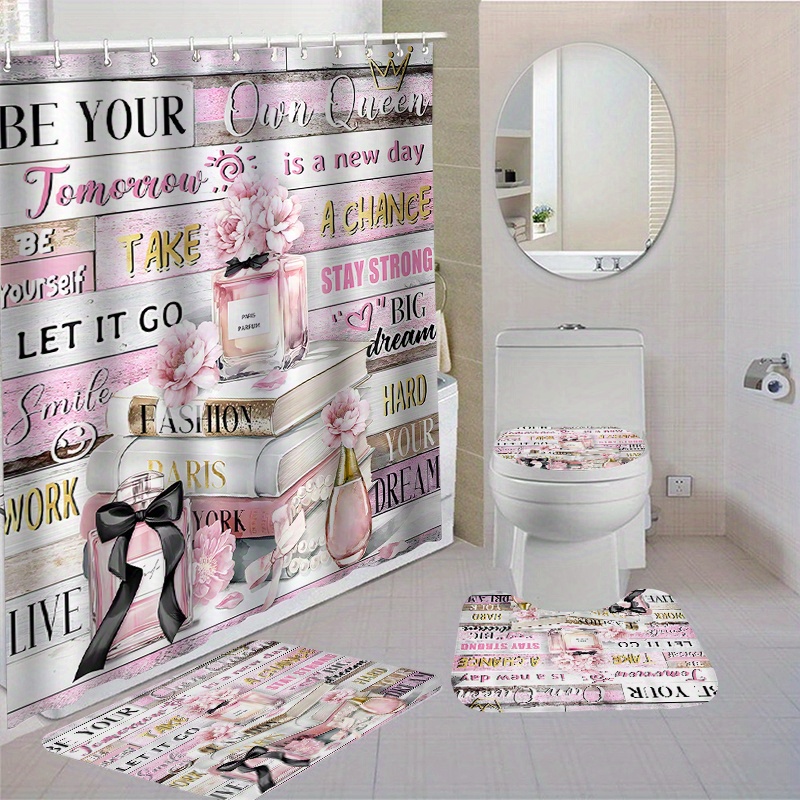 Peiyeety 4-teiliges Badezimmer-Set - Duschvorhang, Badematte, Toilettendeckel Mit Eisbären-Design