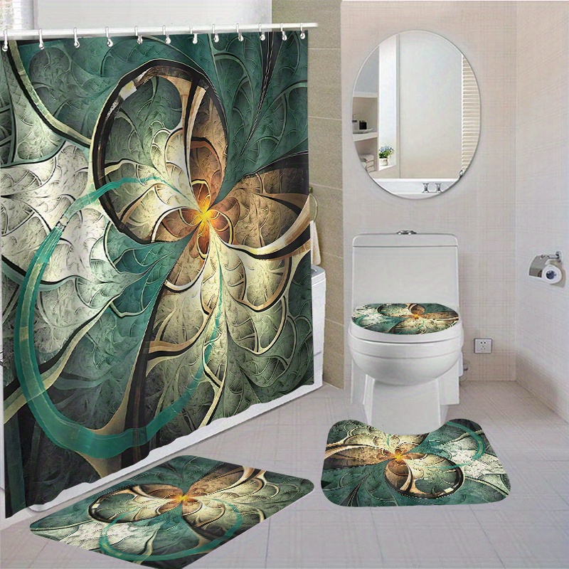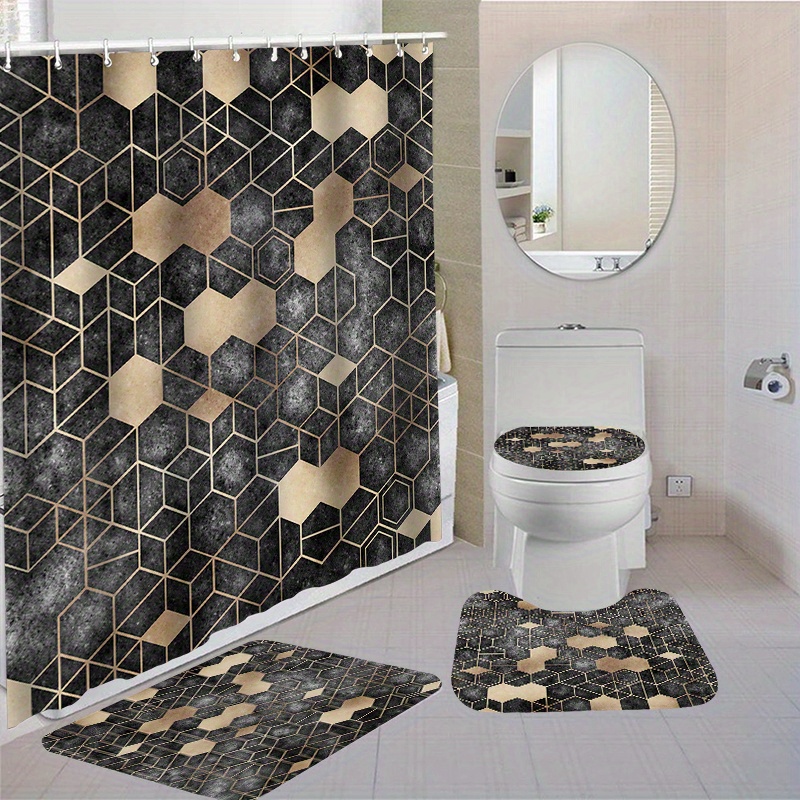 • Peiyeety 4-teiliges Badezimmer-Set - Duschvorhang, Badematte, Toilettendeckel Mit Eisbären-Design