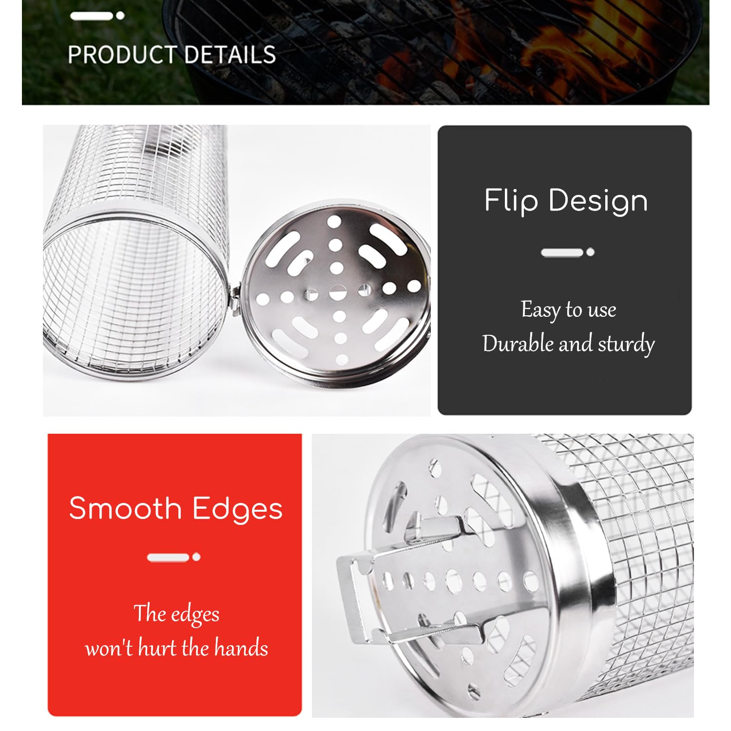Grillen war noch nie so einfach! Dieses 2-teilige Set mit rollenden Grillkörben aus Edelstahl 304 revolutioniert dein BBQ-Erlebnis. Die zylindrische Form mit 360° Grillfläche sorgt für gleichmäßiges Garen ohne ständiges Wenden. Mit abnehmbaren Griffen für einfache Handhabung. Ein Korb misst 33x9,5x9,5cm, der andere 20x8,5x8,5cm - perfekt für verschiedene Mengen. Ideal für Gemüse, Fleisch, Fisch und Meeresfrüchte. Einfach zu reinigen, spülmaschinenfest. Perfekt für Garten-Partys, Camping oder den nächsten Grillabend mit Freunden. Mach dein Grillen effizienter und spaßiger!