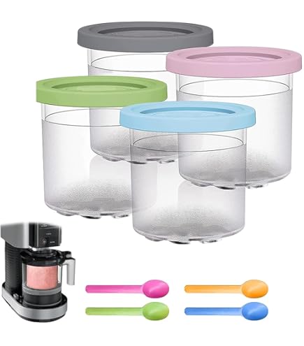Mehr Vielfalt für deine Ninja Creami! Dieses 4er-Set Ersatzbehälter mit auslaufsicheren Deckeln gibt dir die Freiheit, mehrere Geschmacksrichtungen parallel zu genießen. Kompatibel mit NC301, NC300, NC299AMZ, CN305A und CN301CO Serien. Die verbesserten Deckel schließen absolut dicht - kein Auslaufen mehr! Aus BPA-freiem Material und spülmaschinenfest für einfache Reinigung. In verschiedenen Farben erhältlich, perfekt zum Sortieren und Organisieren. Wichtig: Füllhöhe nicht überschreiten und keine heißen Zutaten verwenden. Dein Ticket zur Eiskreationen-Vielfalt!