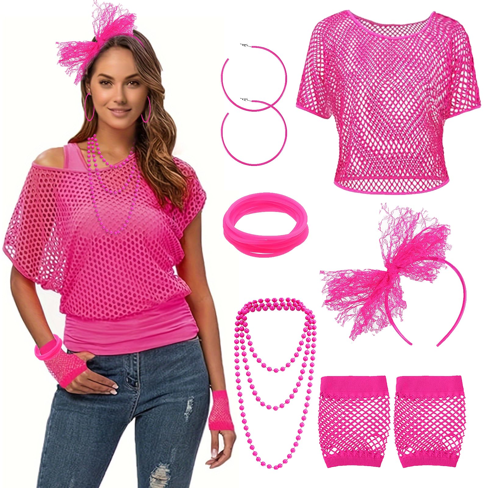 Ready für die 80er Party? Dieses komplett Outfit-Set hat alles, was du für den perfekten Retro-Look brauchst! Inklusive T-Shirt, Tutu-Rock, Halskette, diesen coolen Netzhandschuhen, Ohrringen, Stirnband und sogar einer Gürteltasche - also wirklich alles aus einer Hand. Einfach anziehen und du bist sofort in der Zeit von Madonna und Cyndi Lauper gelandet! Perfekt für Karneval, Mottopartys, Geburtstage oder wenn du einfach mal was Verrücktes anziehen willst. Die Qualität stimmt und du musst dir nicht einzeln die Teile zusammensuchen. Siehst du nicht ultra aus? Einfach überziehen und der Spaß kann beginnen! Ob alleine oder mit Freundinnen - mit diesem Set wirst du definitiv zum Hingucker. Mach die 80er wieder lebendig - leg die Lieblingsmusik auf und tanze den Nacht away! Einfach bestellen und ab zur nächsten Party - die 80er warten auf dich!