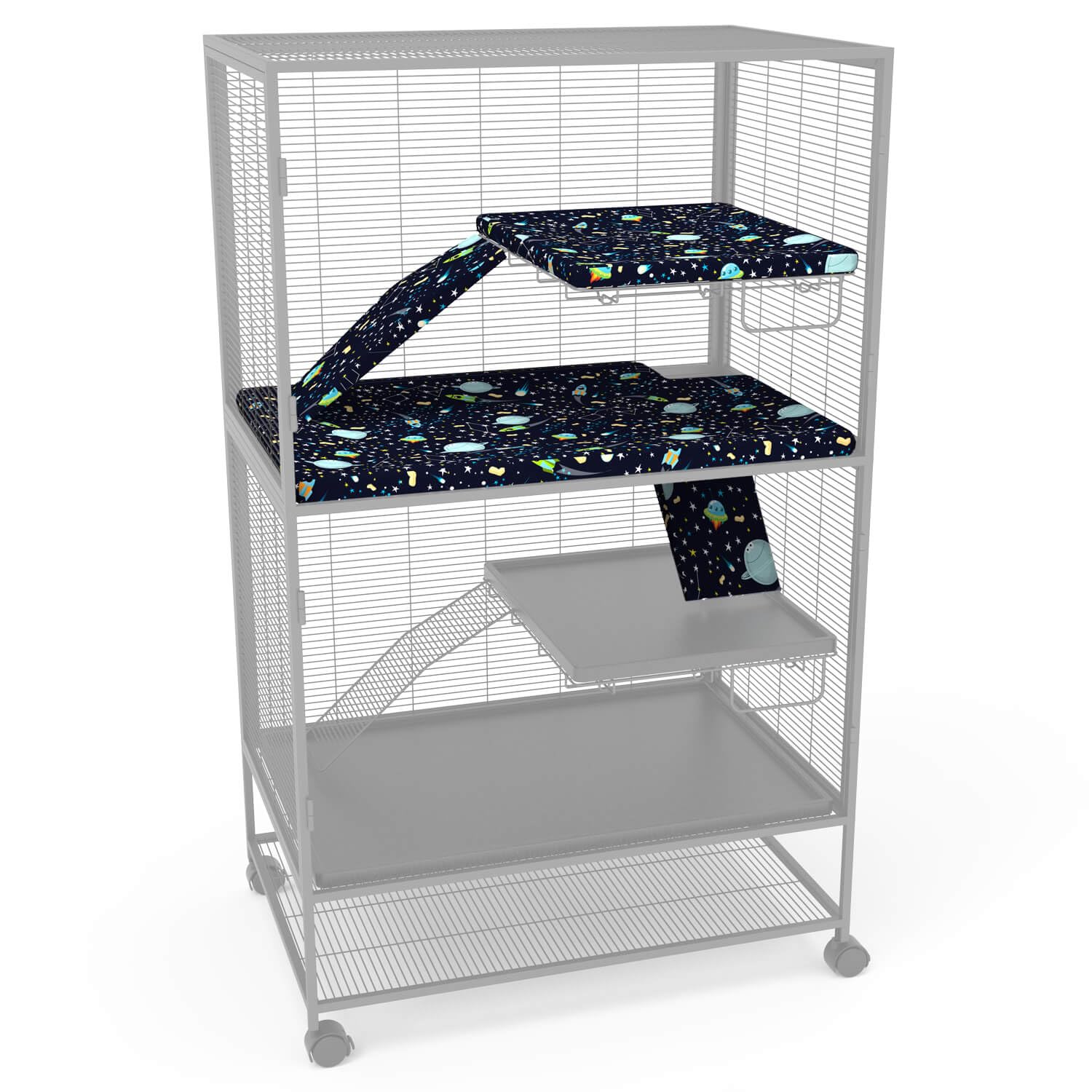 Hey du Frettchen-Fan! Dieses Zubehör-Set macht deinen Ferret Nation oder Critter Nation Käfig erst so richtig gemütlich. In dem Paket findest du alles, was das Tierherz begehrt: Zwei coole Regalabdeckungen, drei Rampenabdeckungen und sogar Abdeckungen für die obere und untere Wanne. Alles in diesen lässigen Farben Lila und Blaugrün - sieht einfach fresh aus! Das Mikrosuede-Material ist superweich und vor allem praktisch: Einfach drüberstülpen, festmachen und schon ist dein Kleintier-Käfig aufgewertet. Und wenn's mal dreckig wird? Kein Problem - alles maschinenwaschbar! Passt übrigens zu allen Ferret und Critter Nation Modellen (181, 182, 183, 161, 162, 163). Deine Fellnasen werden's dir danken, denn so haben sie mehr Komfort und du weniger Putzstress. Einfach genial, oder? Mach deinen Käfig zur Wohlfühloase - deine Frettchen werden's lieben!