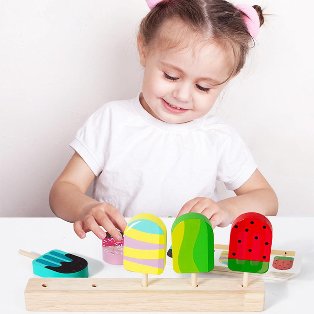 Eisverkauf eröffnet! Dieses süße Holz-Eiscreme-Set begeistert kleine Eisdielen-Besitzer. Im Set enthalten: 5 bunte Holzeis, 1 Holzsockel zum Präsentieren und 20 doppelseitige Karten für noch mehr Spielspaß. Aus 100% Massivholz mit ungiftiger Wasserfarbe - absolut sicher für Kinder. Alle Kanten sind abgerundet und gratfrei - keine Verletzungsgefahr. Perfekt für Rollenspiele - fördert Kreativität, soziale Kompetenzen und Selbstvertrauen. Ideal für die Spielküche oder den Kaufmannsladen. Ein tolles Montessori-Spielzeug für Kinder ab 3 Jahren - pädagogisch wertvoll und macht riesigen Spaß. Ein wunderbares Geschenk für Geburtstage, Weihnachten oder einfach so. Stundenlangen Spielspaß garantiert - ohne Bildschirm!