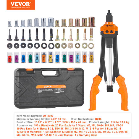 Nie wieder teure neue Nietzangen kaufen! Dieses praktische Ersatz-Set für deine Handnietzange gibt ihr ein zweites Leben. Enthalten sind Ersatzspitzendorne für die gängigsten Größen M5, M6, M8 und M10 - alles aus robustem Stahl gefertigt für lange Haltbarkeit. Die Montage ist denkbar einfach: Alten Dorn raus, neuen rein und schon kann deine Nietzange wieder wie neu arbeiten. Super praktisch ist auch, dass die Nietmutterstange und Mutter zusammengebaut werden können - so gehen keine kleinen Teile verloren. Perfekt für alle, die regelmäßig mit Nietmuttern arbeiten und sich das Geld für eine komplett neue Zange sparen wollen. Ob in der Werkstatt, im Handwerk oder für Hobby-Projekte - dieses Set ist ein echter Lebensretter! Verschiedene Mengen erhältlich, je nachdem wie viele Ersatzteile du brauchst.