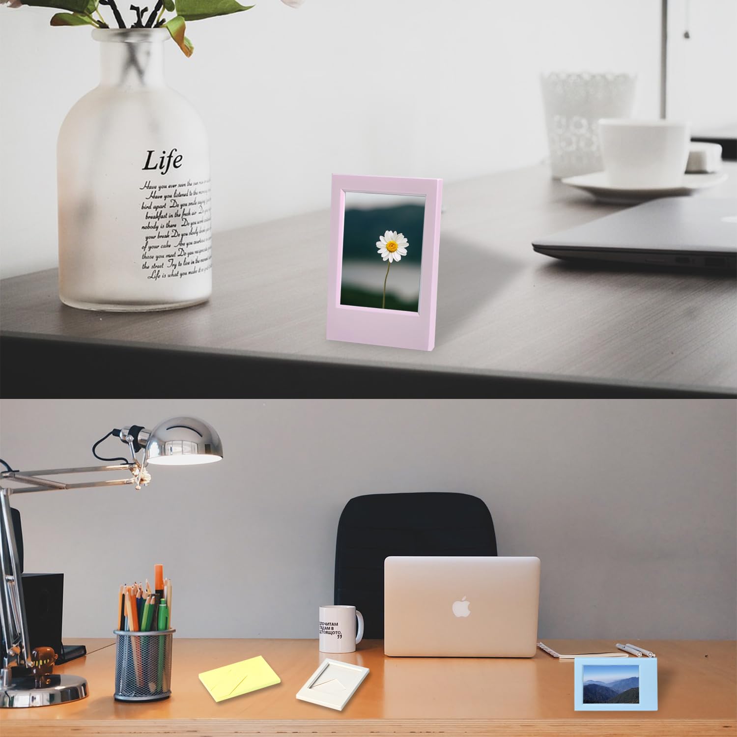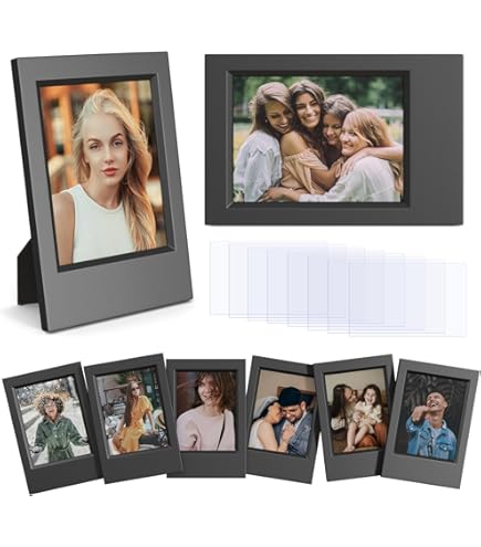 Endlich eine schöne Möglichkeit, deine Instax Mini Fotos zu präsentieren! Dieses 4er-Set Acryl-Rahmen ist perfekt für Fotos im Format 5,4 x 8,6 cm. Die Rahmen selbst messen 5,1 x 7,6 cm und bestehen aus klarem Acryl mit magnetischem Verschluss - einfach auseinanderziehen, Foto einlegen und die vier Eckmagnete halten es sicher. Mit dem praktischen Standfuß kannst du die Rahmen sowohl hoch- als auch querformatig aufstellen. Super für den Schreibtisch, Nachttisch oder jedes Regal. Schützen deine Lieblingsfotos vor Staub und Kratzern und sehen dabei noch richtig stylisch aus. Auch toll für kleine Kunstwerke oder Erinnerungsstücke!
